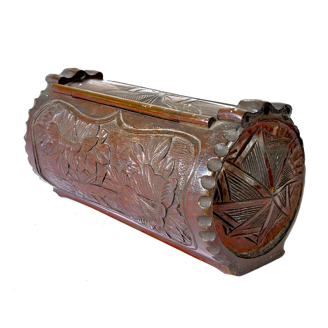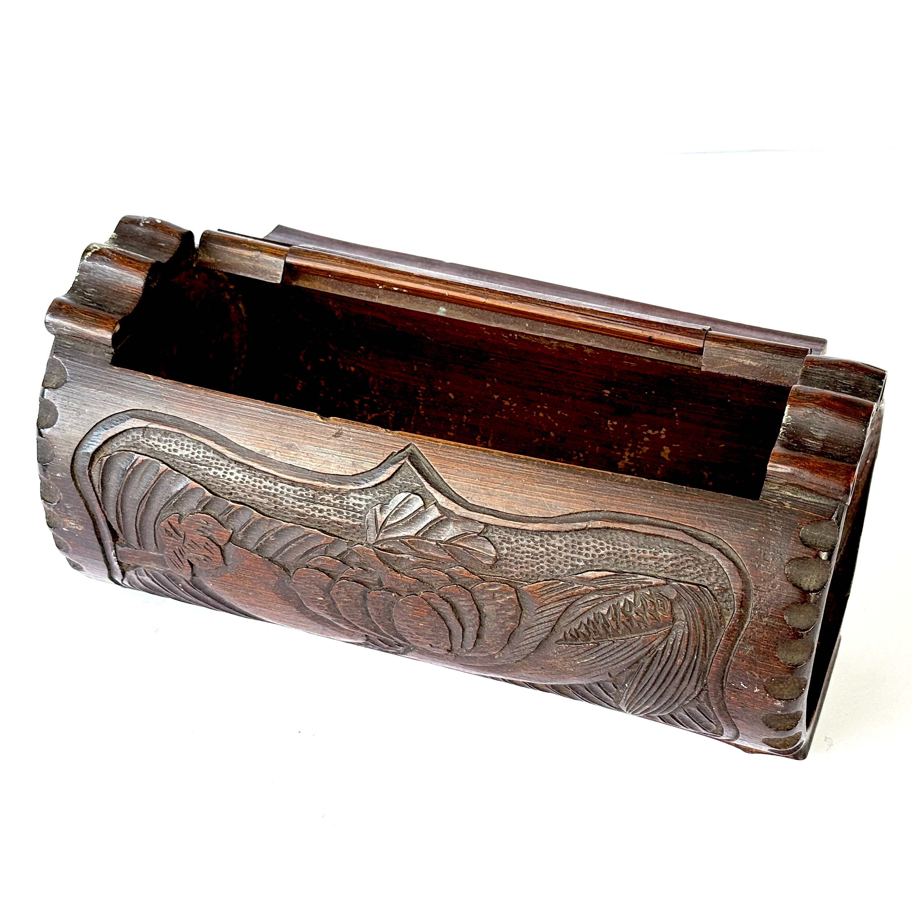 4258115. 1920'ernes KINESISKE UDSKÅRNE BAMBUSBOKS.
