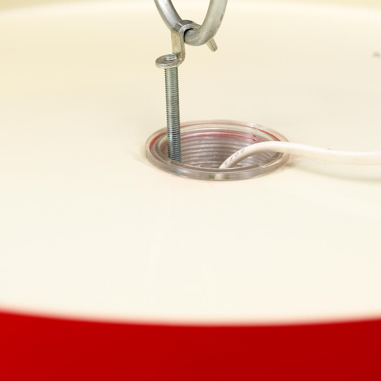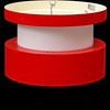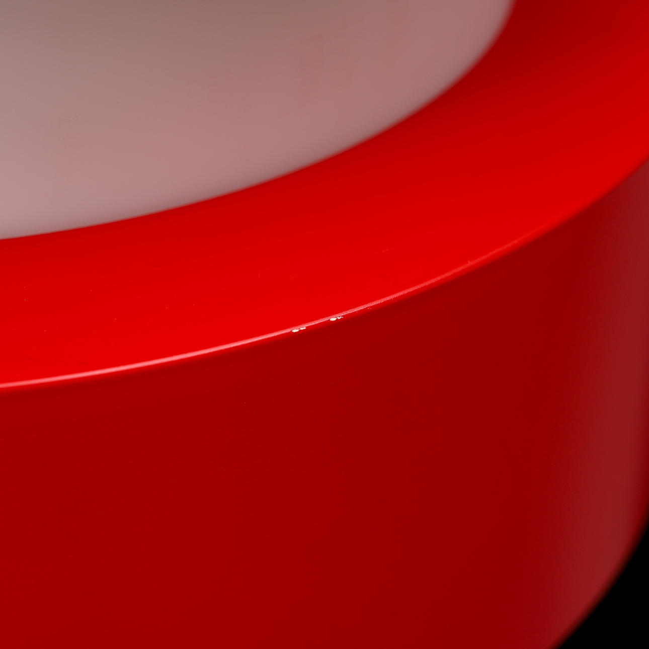 Hvid og rød akrylplast. Diam 40, højde 26 cm.