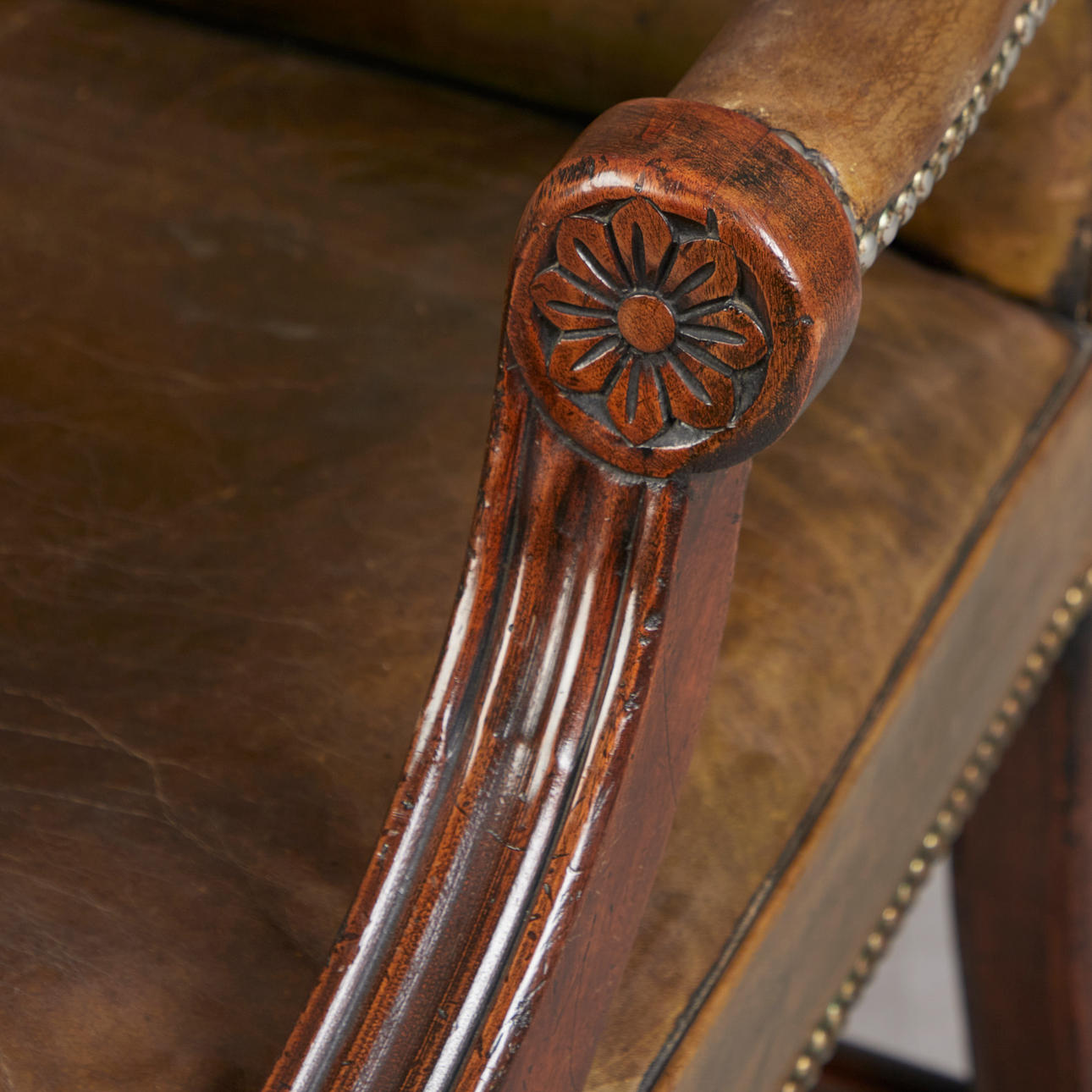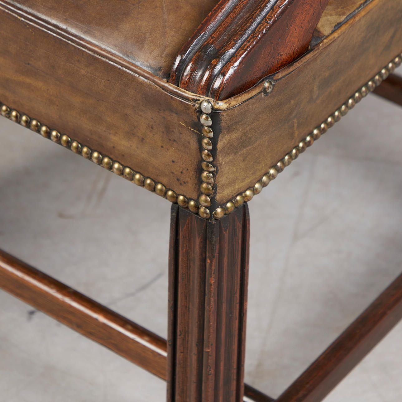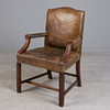 4258690. stol/ armlæn, mahogni, læder, engelsk stil.