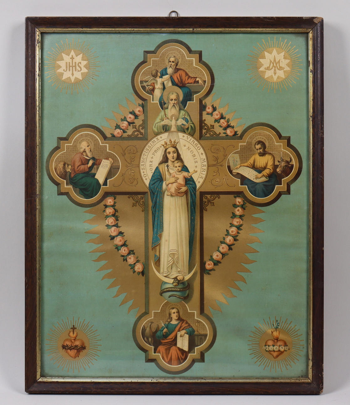 4259975. RELIGIØST TRYK, Jomfru Maria og krucifiks.