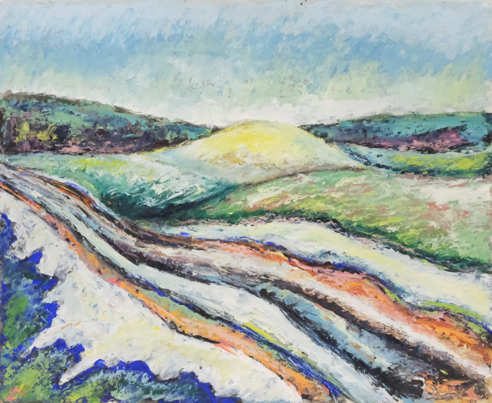 4259987. OIDENTIFIERAD KONSTNÄR. OLIE PÅ PANEL. LANDSKAB.
