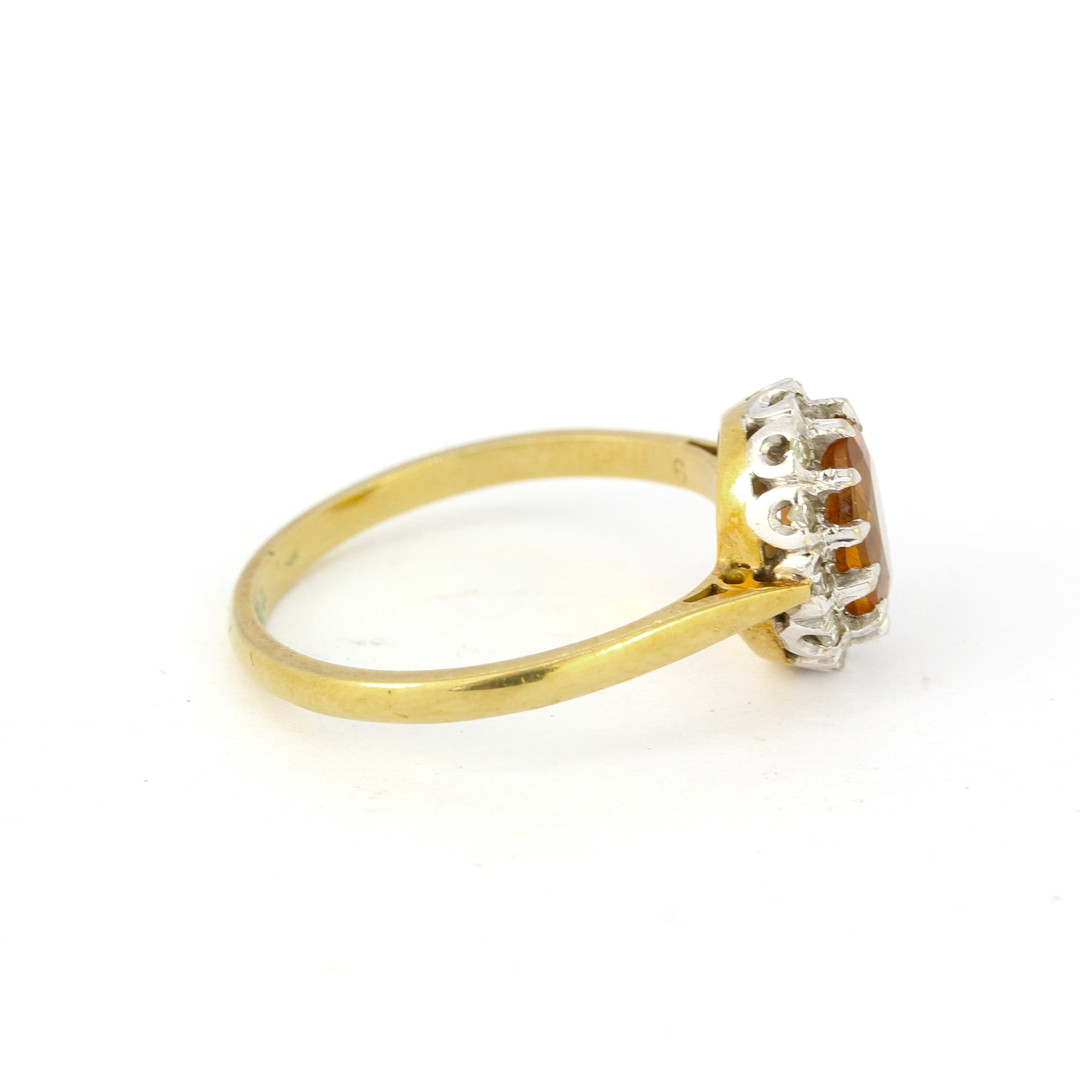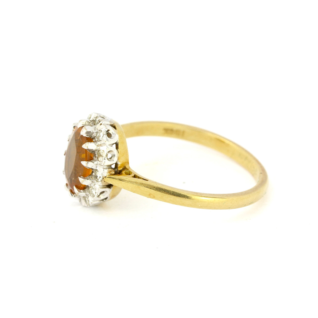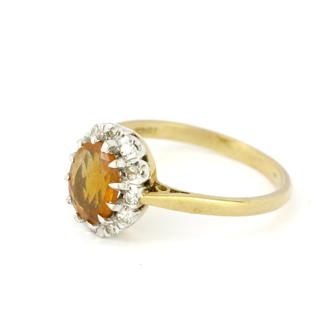 4261066. 18KT GULD, CITRIN OG DIAMANT SÆT RING.