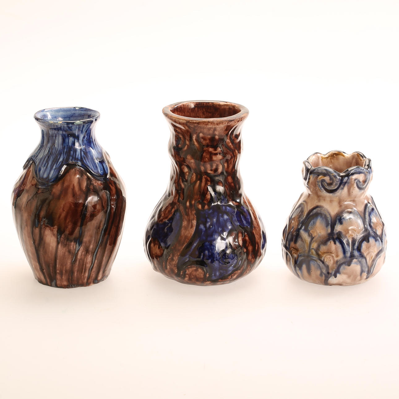 5 keramiske vaser, Roskilde lervarefabrik, Danmark.