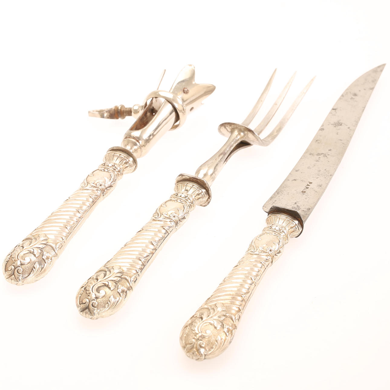 Trancherbestik, 3 dele, sølv, Frankrig, 1800-tallet.