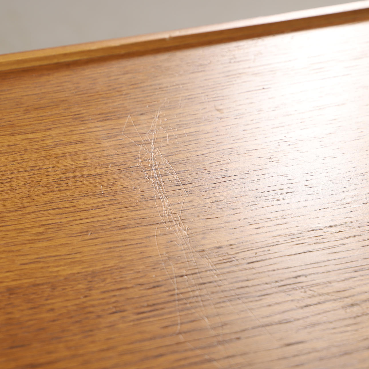 Brugsslitage, kantslid, ridser, mindre slid i finér.