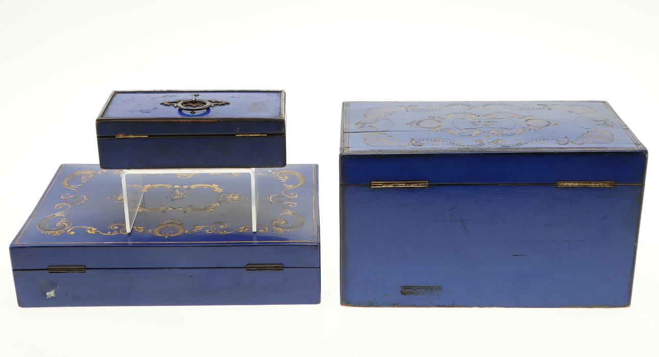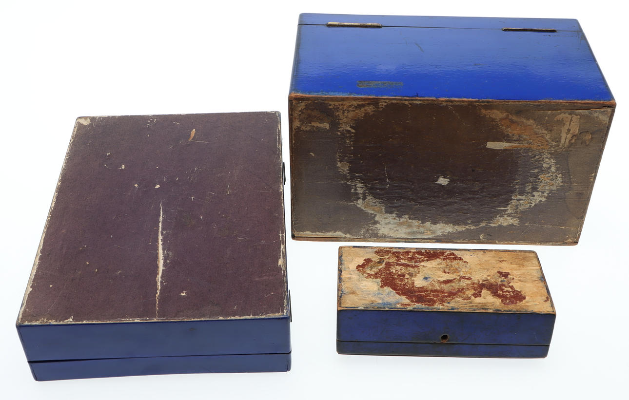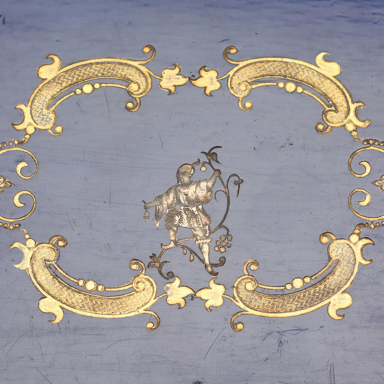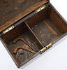 Aldersrelateret slid, mærker og skrammer. Indersiden af cigarettelet har løse hjørnedele. Manglende nøgle til spilchat.
