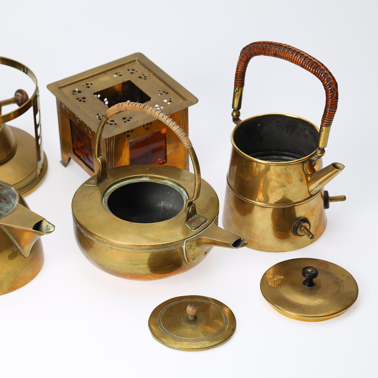 4265813. En samling tekander, messing, bl.a jugendstil 1900-tallets begyndelse (4).