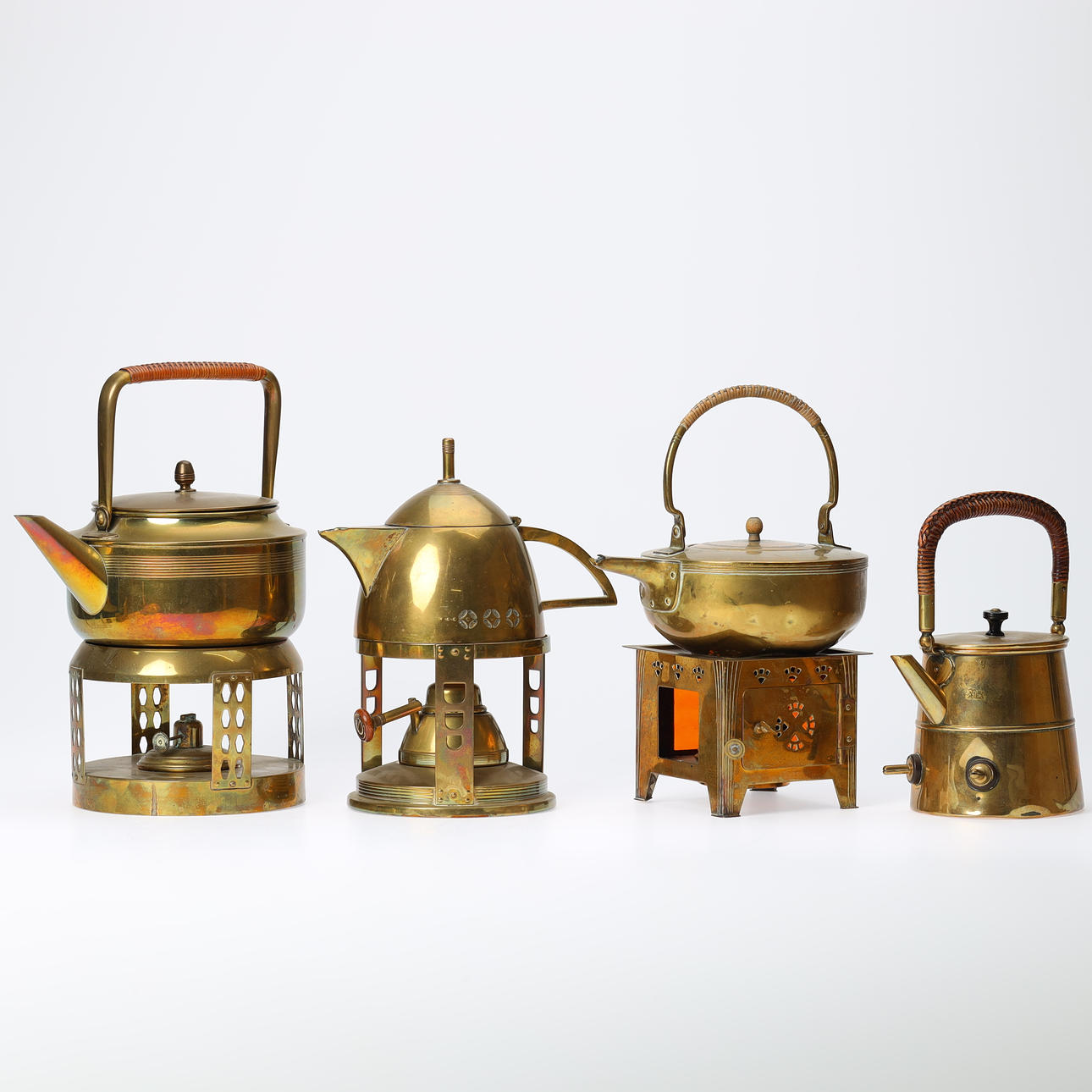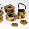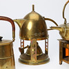 En samling tekander, messing, bl.a jugendstil 1900-tallets begyndelse (4).