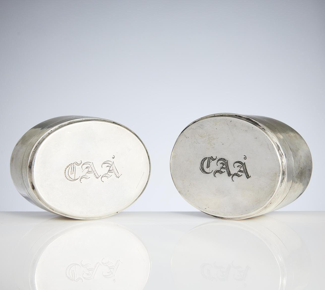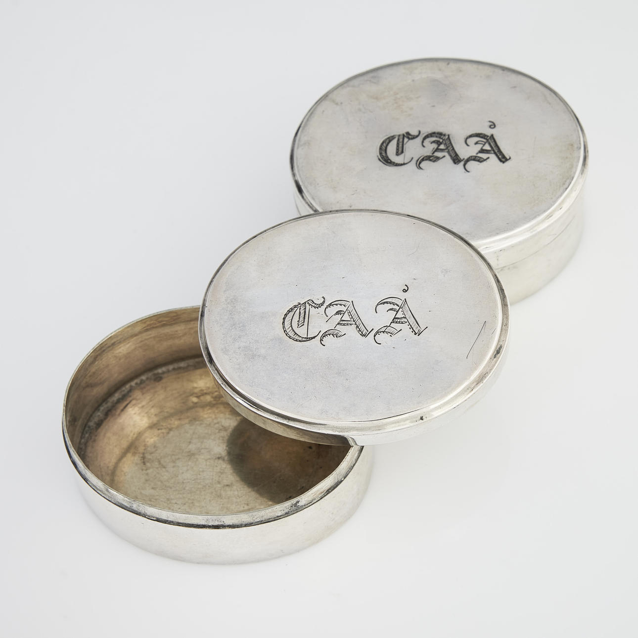 AI JÖRGENSEN. Æsker, et par, sølv, Ystad 1841.