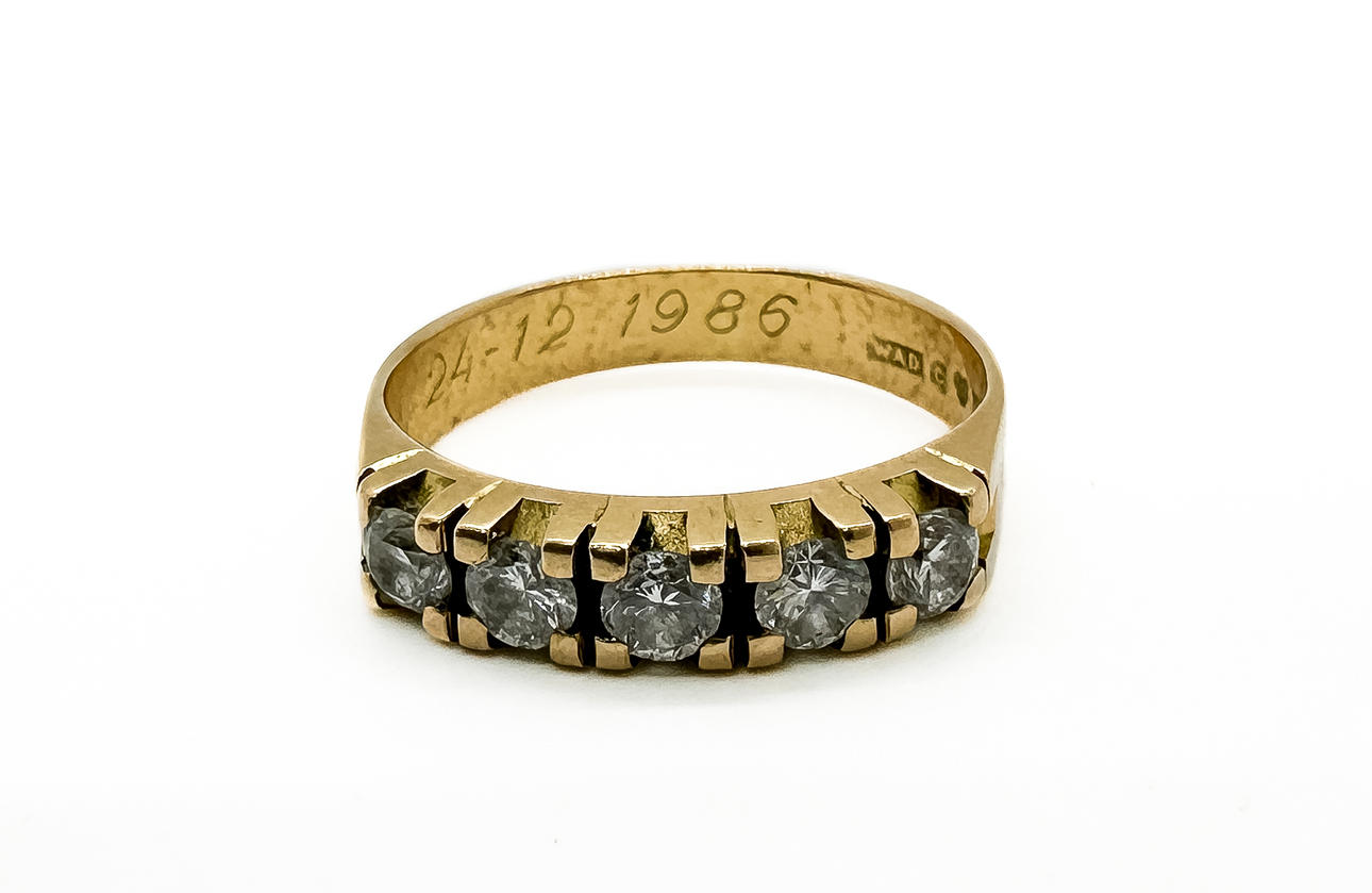 RING, 18k guld, 5 stk diamanter 0,6 karat.