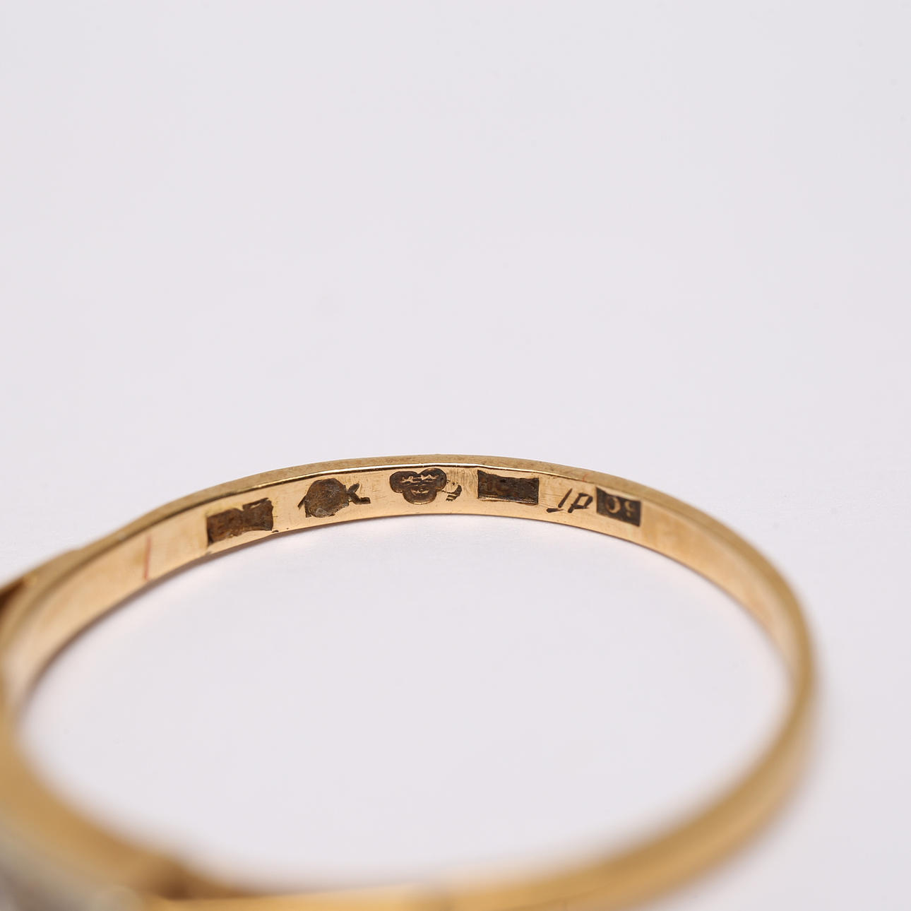 RING, 18 kt. guld med hvide sten. Vægt ca. 2 gram.