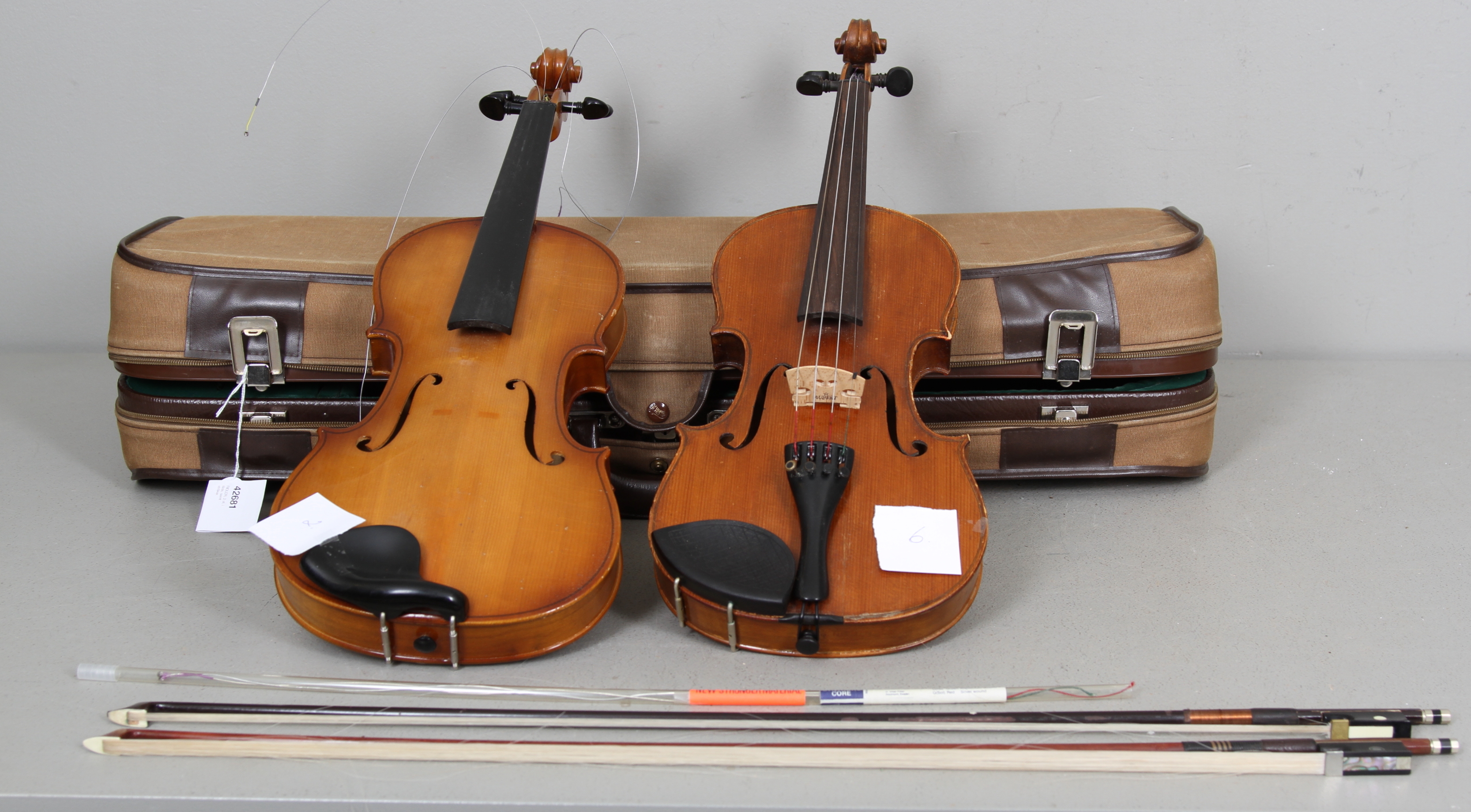 42681. FIOLER, 2 stk, i æske, og snore.