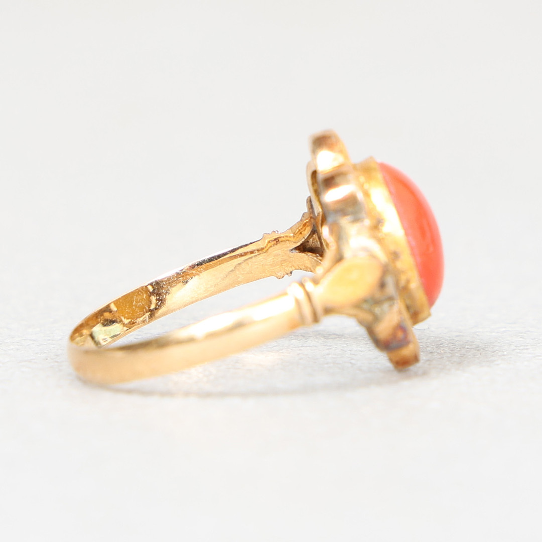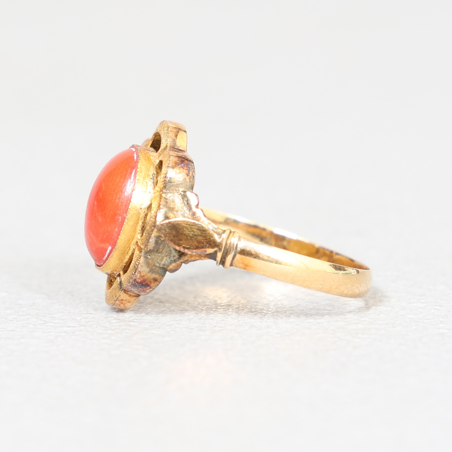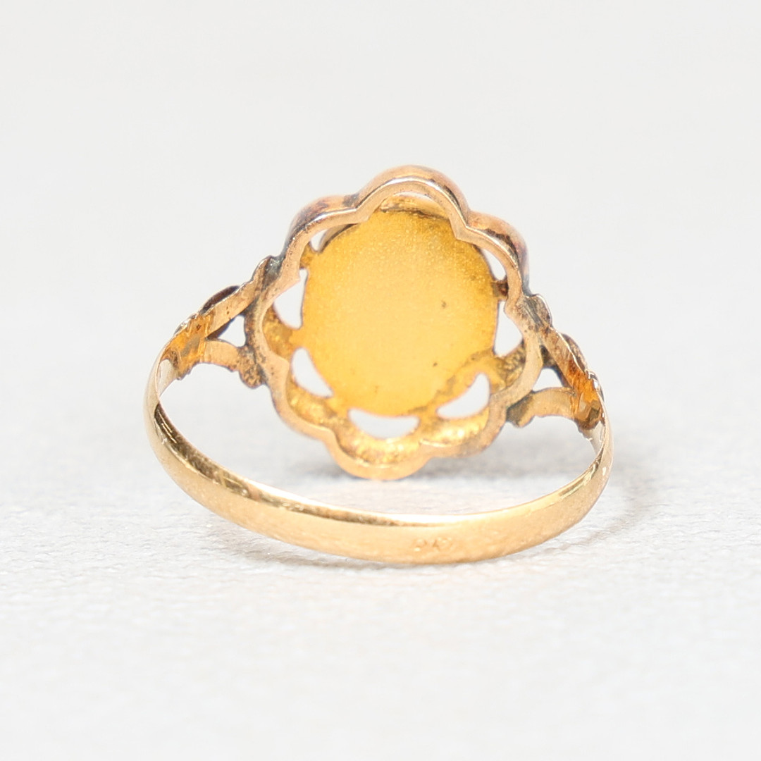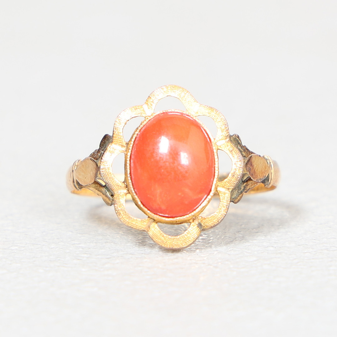 4269344. EN GUL RING AF METAL OG KARNEOL.