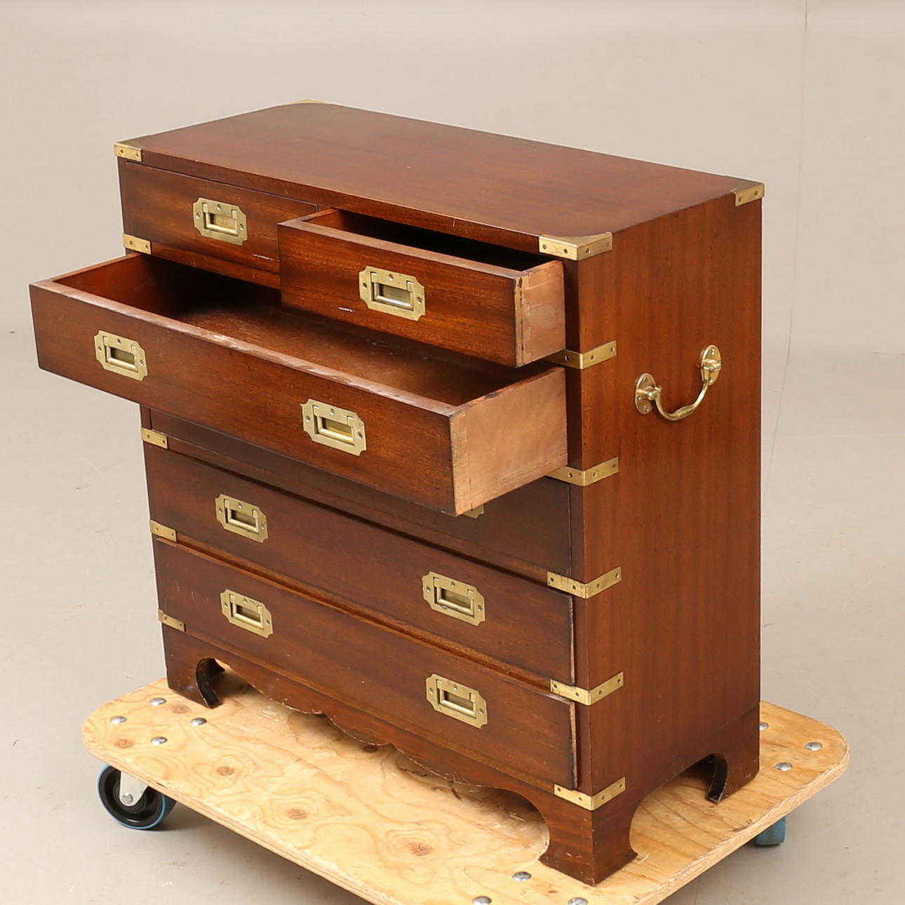 4269802. Kommode af skuffer, bejdset træ, engelsk stil.