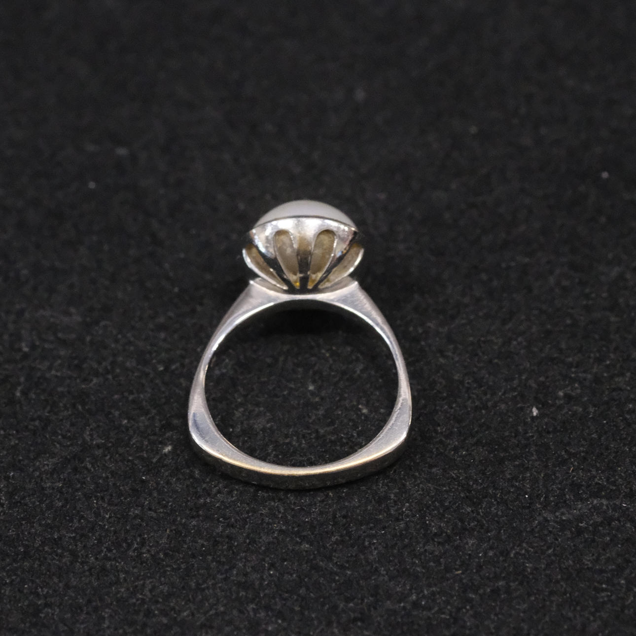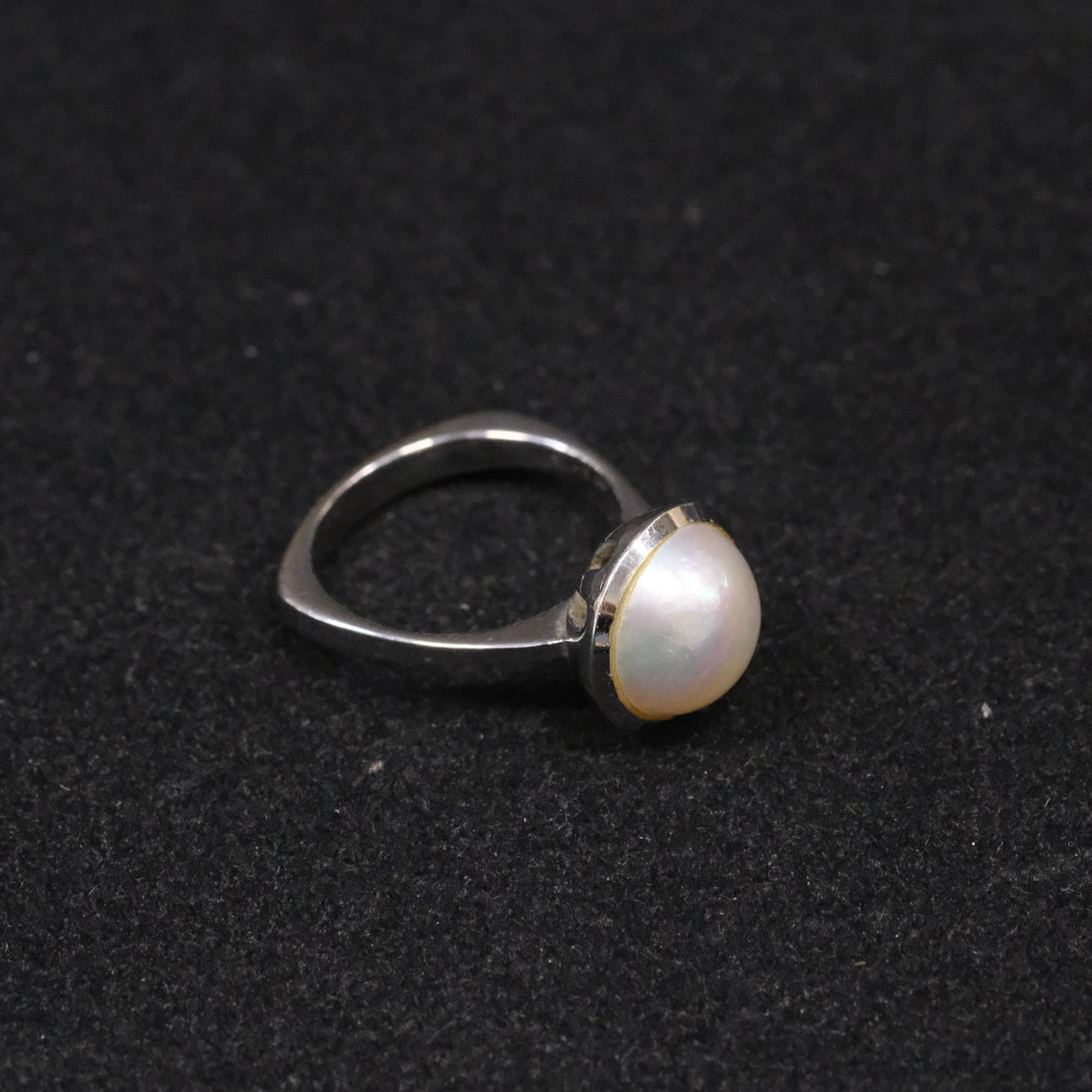 Kultiveret mabéperle, ca. 11 mm, sat i 18k hvid, guld, str. 17, vægt 5,9 gram.