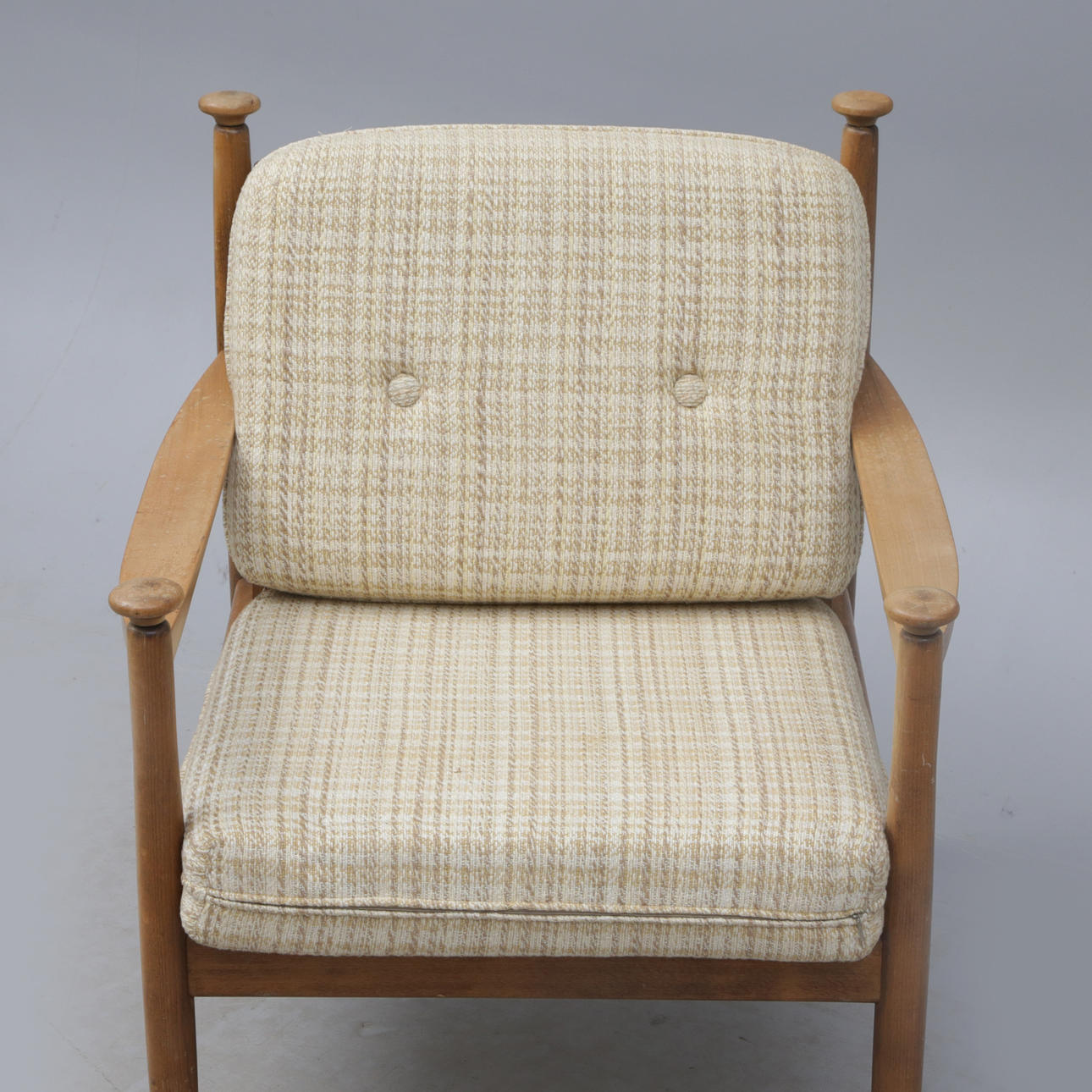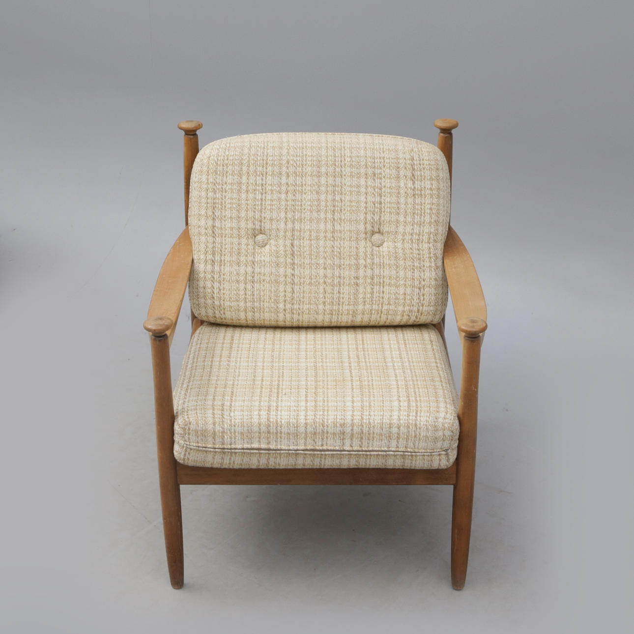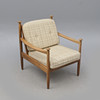 4272795. ERIC MERTHEN. Lænestol, træ, med tekstilpuder.
