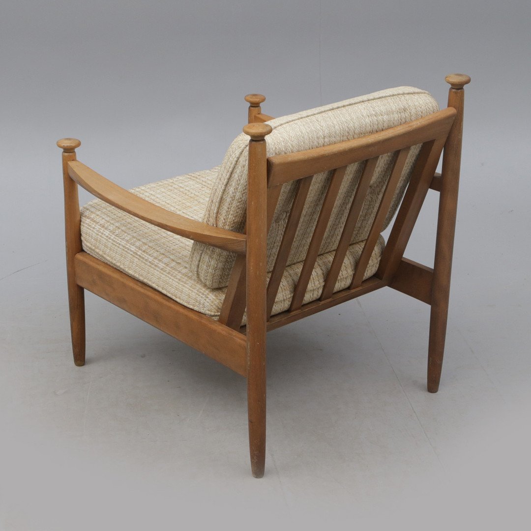 4272795. ERIC MERTHEN. Lænestol, træ, med tekstilpuder.