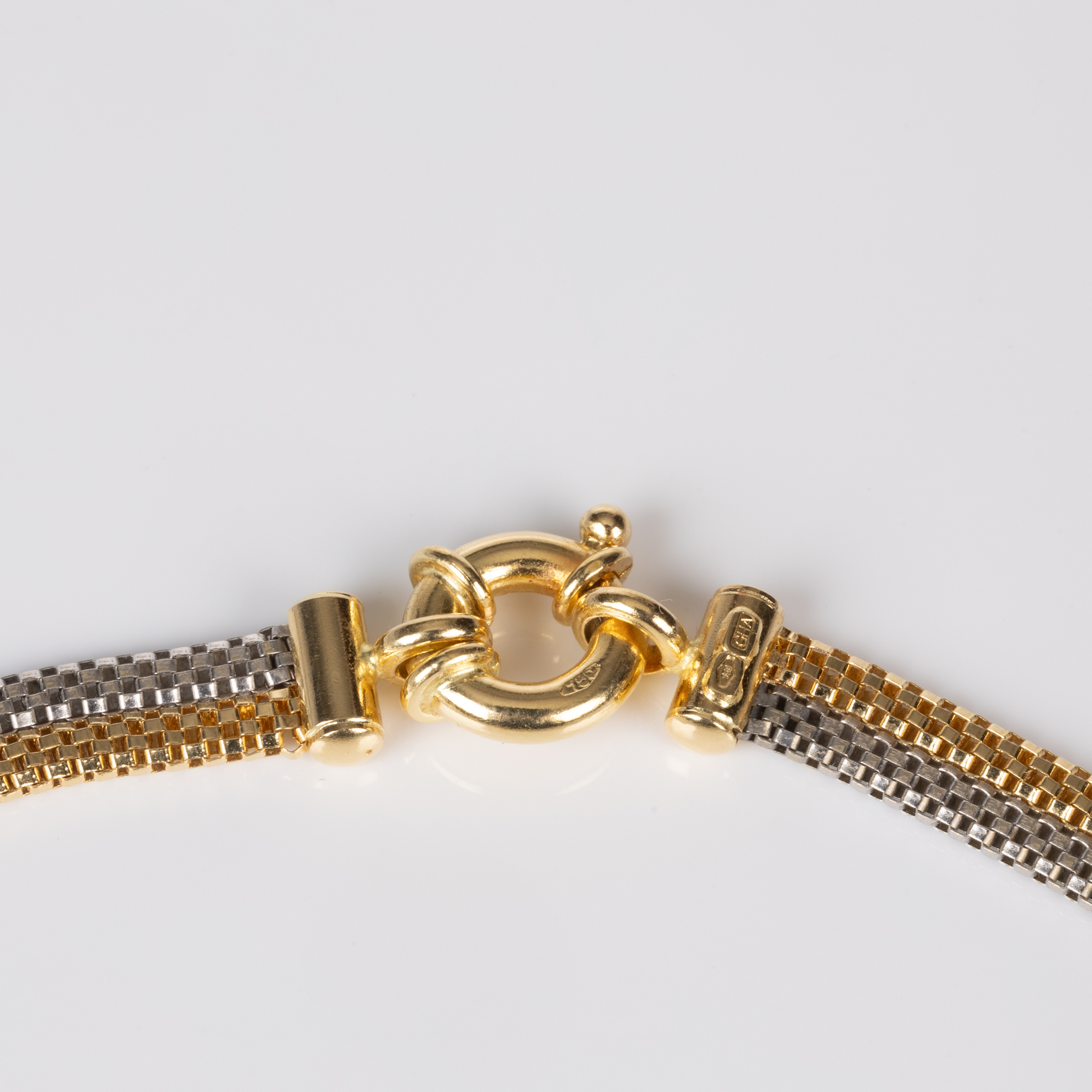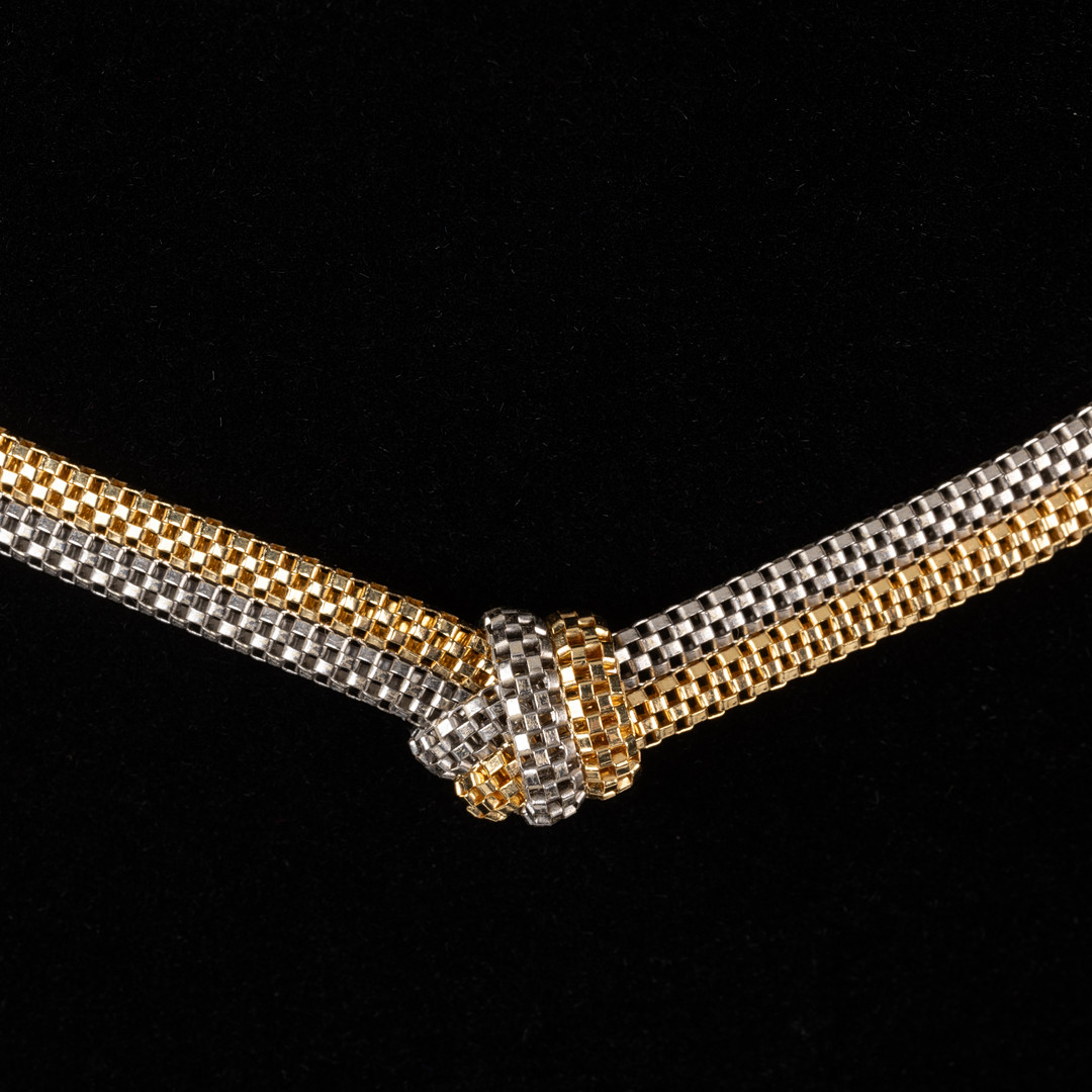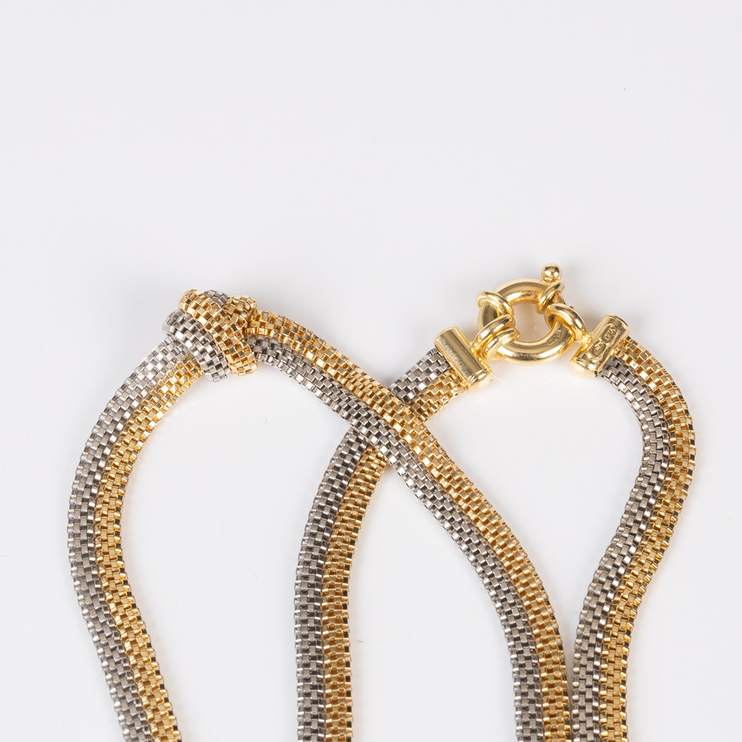 4273138. HALSKÆDE, K18 flerfarvet guld.