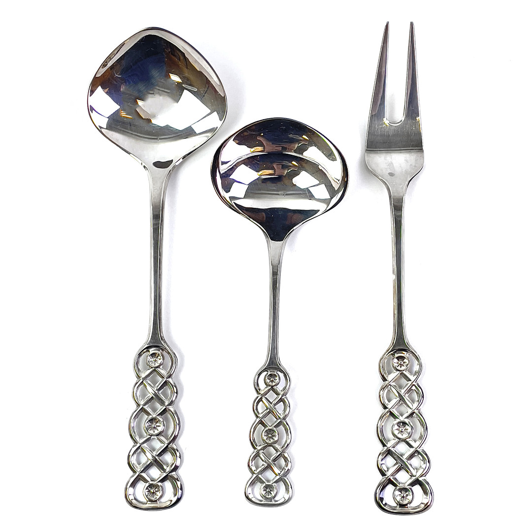 4273906. DAVID ANDERSEN, 3-delt serveringsbestik og suppeske, Ringebu sölv, Norge.