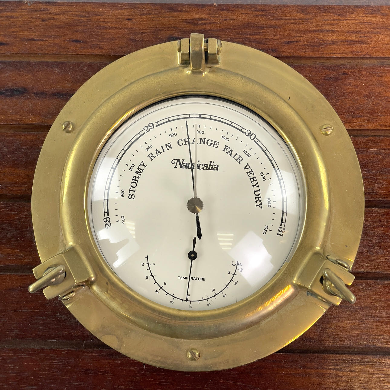 SKIBSUR & BAROMETER. Nauticalia, træ/metal, England.