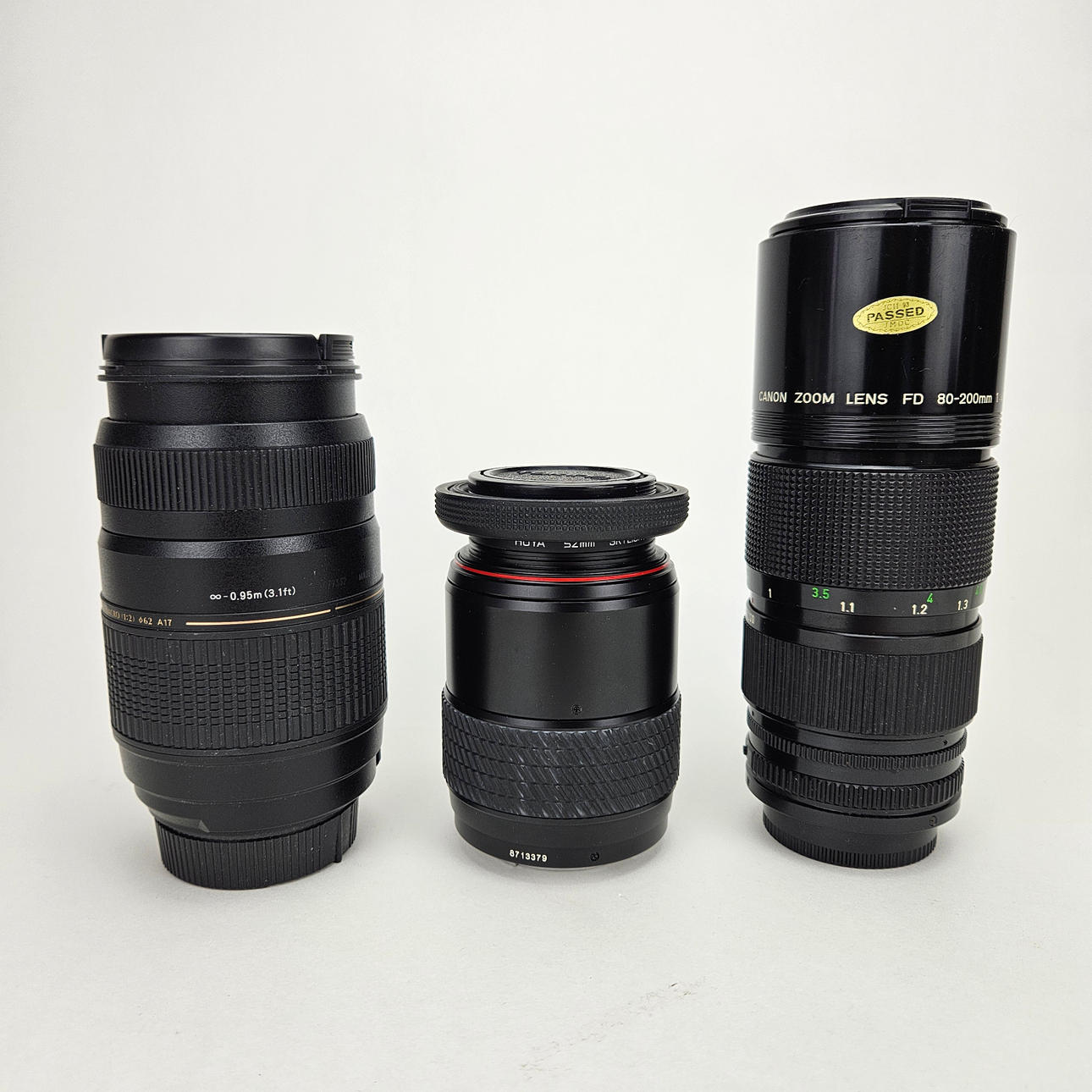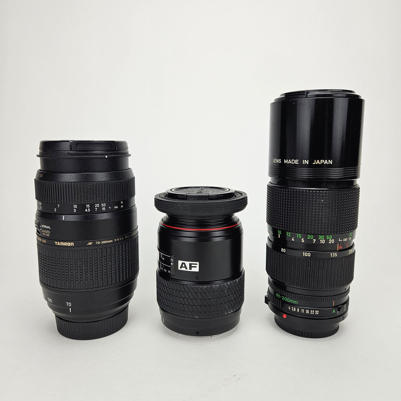 Tokina 70-210. Tamron AF 70-300mm 1:4-5.6 Tele-makro (1:2) 62. Canon, zoomobjektiv, FD 80-200mm 1:4. Længde ca. 11-18 cm.