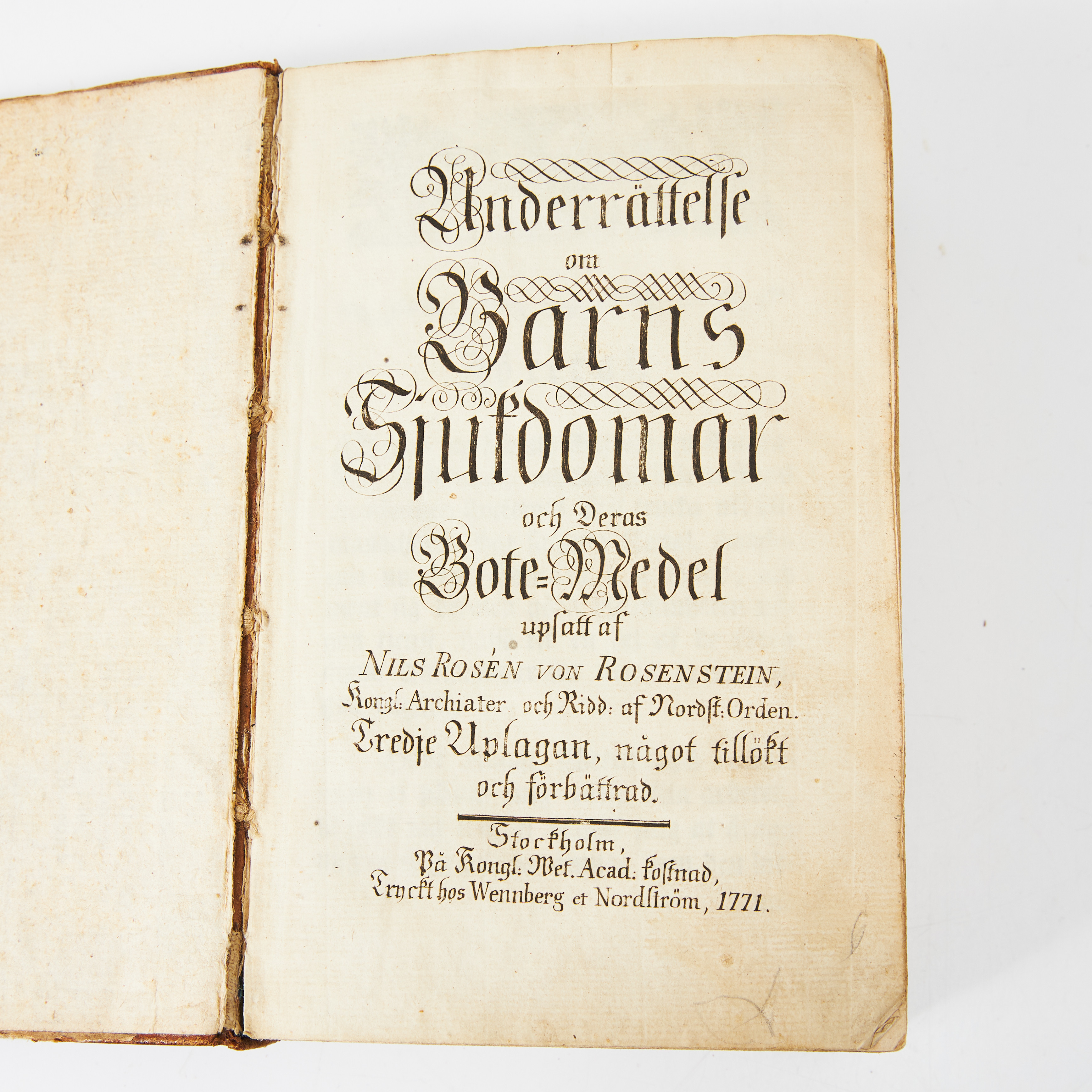4274714. ROSENSTEIN, LÆGEBOG FOR BØRN, 1771.
