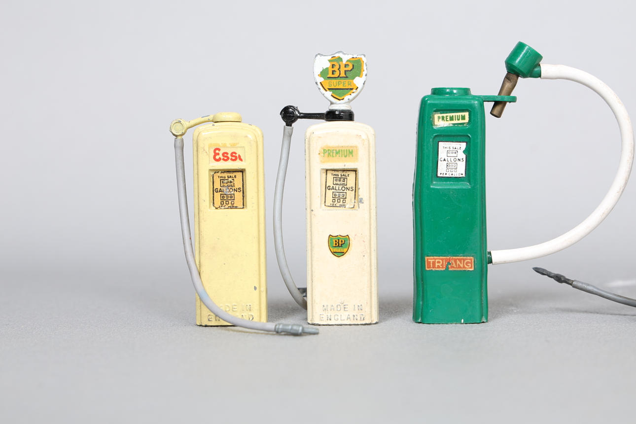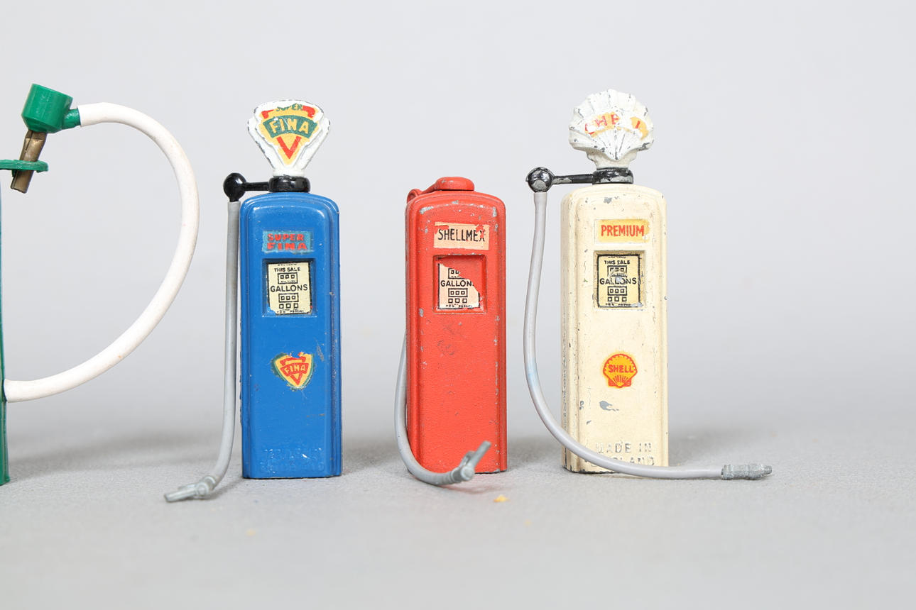 For at inkludere eksempler fra B&S, Tri-Ang (plast) og Britains, reklame Shell, Super Fina, BP Super, Esso Extra og Shellmex, største måler 8 cm højde. (9).