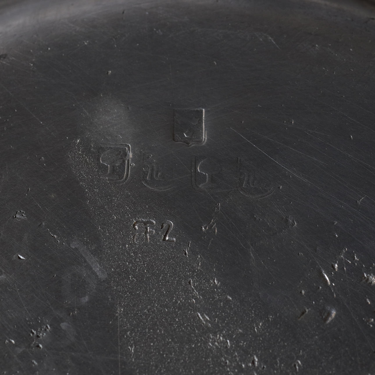 Brugsslitage. Ridser og pletter. Skrivning på undersiden.