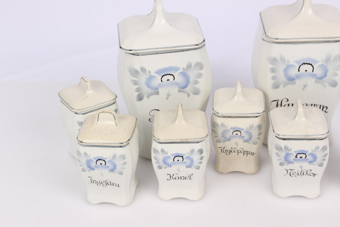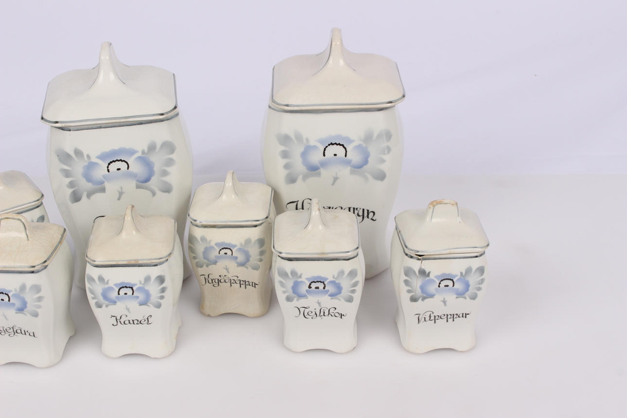 4275389. GEFLE krydderikrukker, 8 dele, 20. årh.