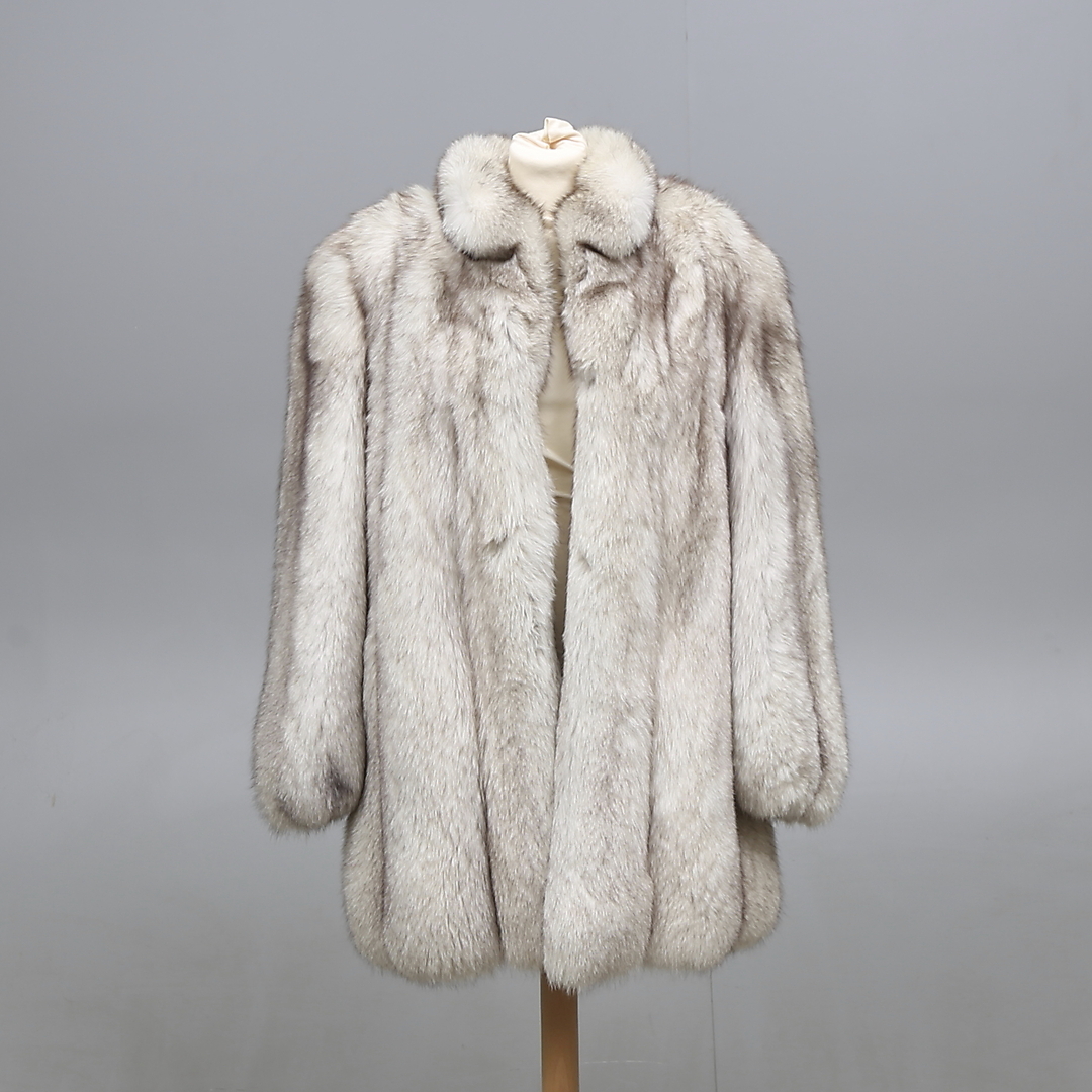 427583. pelsjakke, blå ræv. anslået størrelse 42.