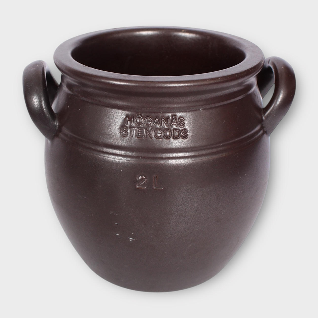 2 liter. Højde 16, bredde 18 cm.