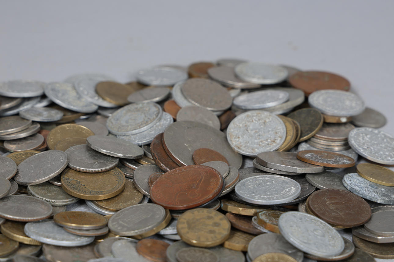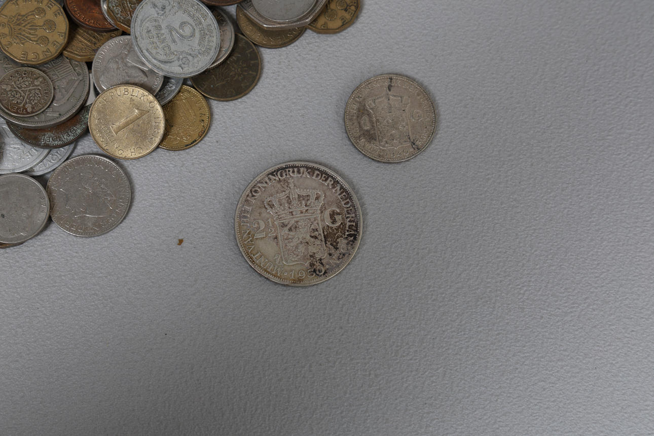inkluderer en 2 1/2 svæveflyvesølvmønt dateret 1930, 1 svæveflyvemønt dateret 1940 sammen med et stort udvalg af verdensmønter.
