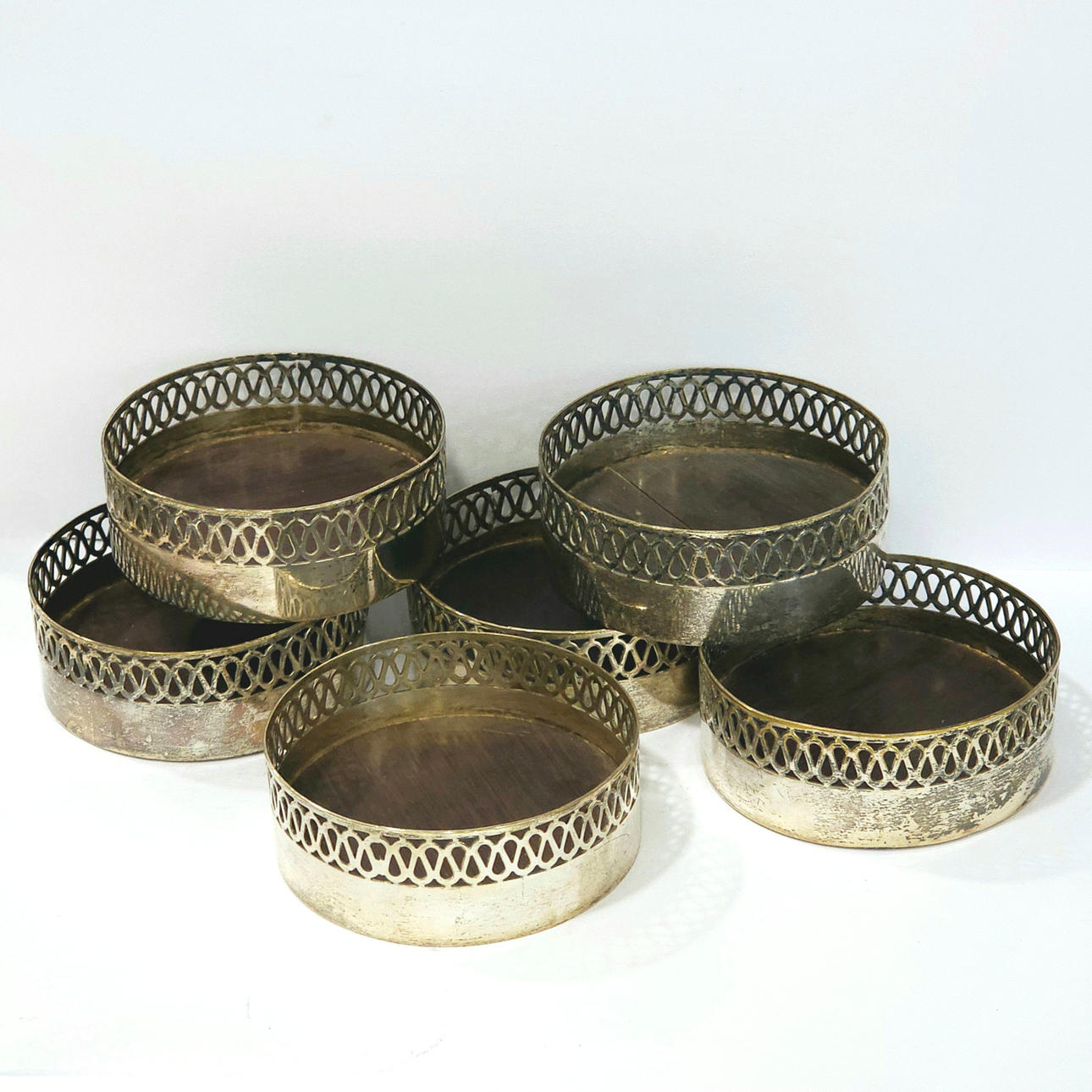 Seks alpaca underlag med galleri og træbund.