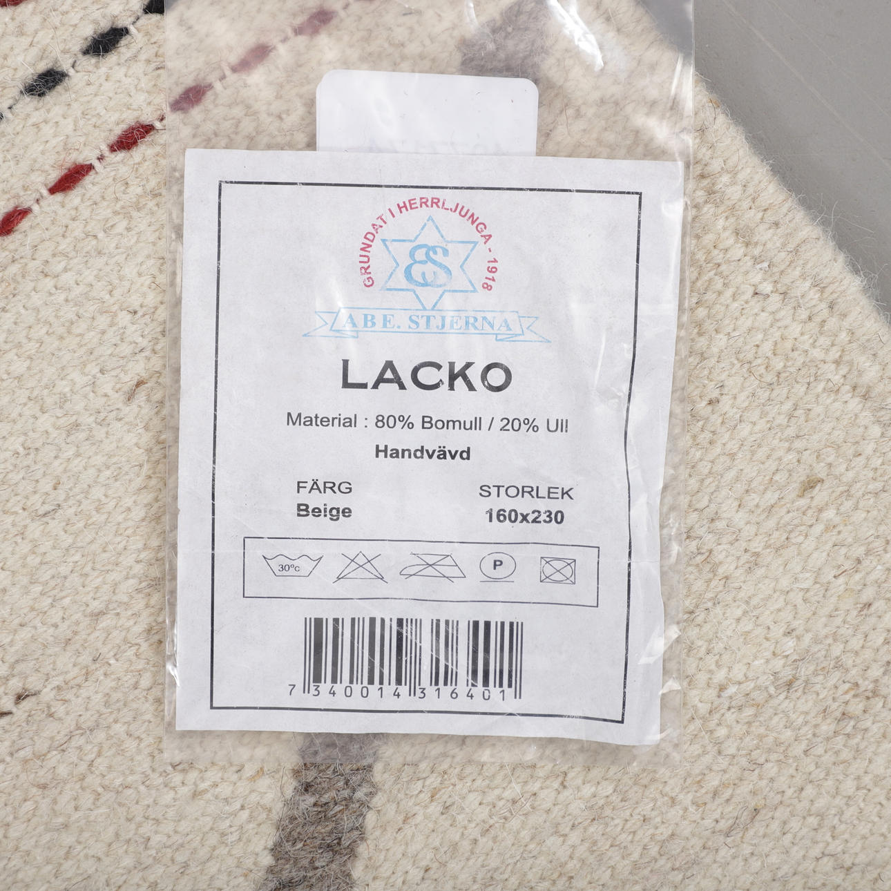 4277174. TÆPPE, Läckö, ABE Stjerne, mål 230x163 cm.