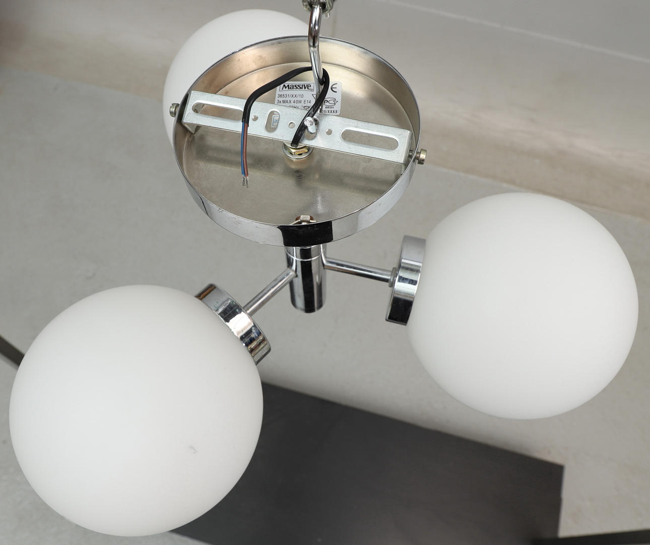 3 lyspunkter. Højde: ca. 20,5 cm Diameter: ca. 40 cm.