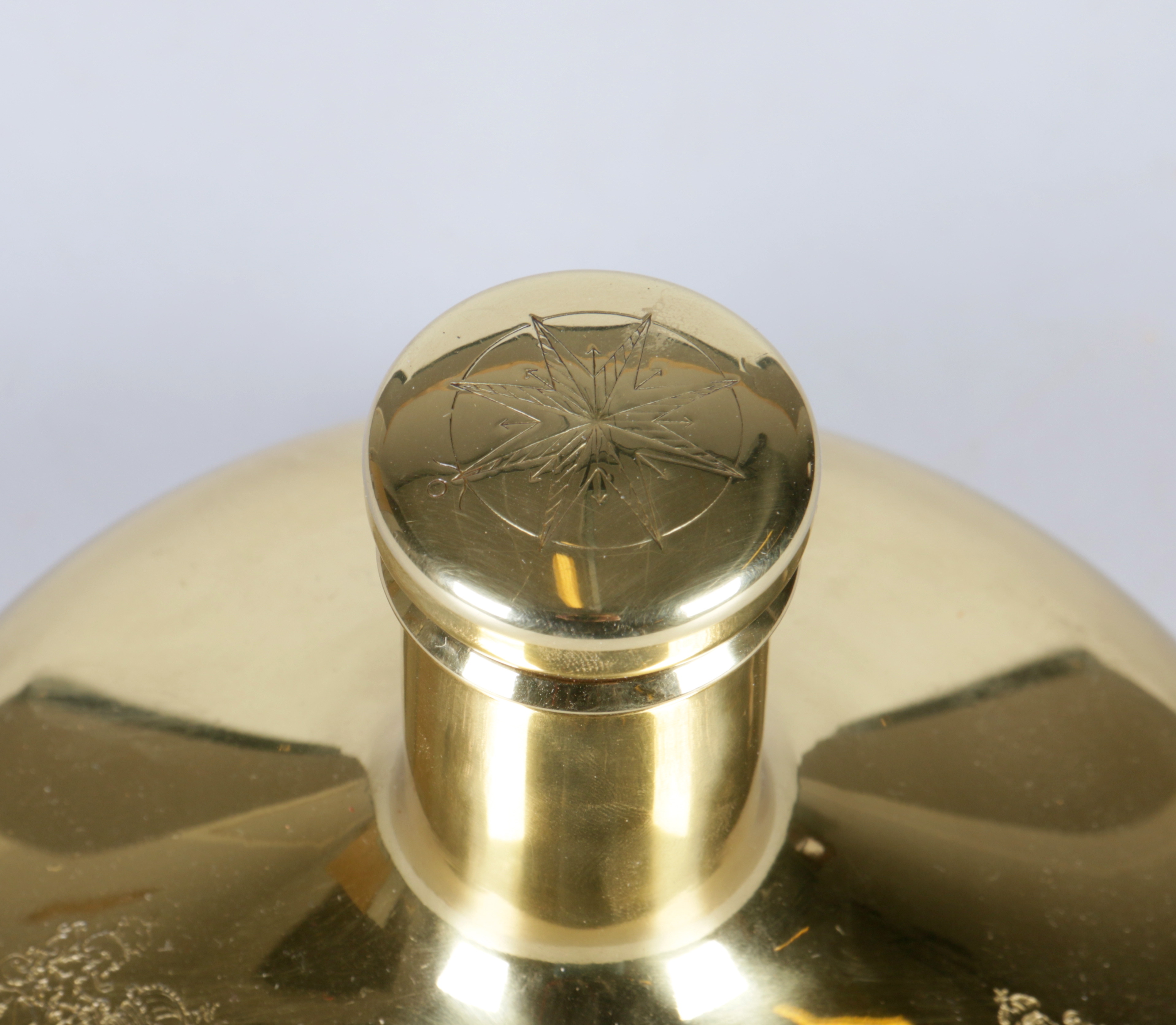 427928. KARAFEL, messing og glas, "Kaptajnskaraf", 1900-tallet.