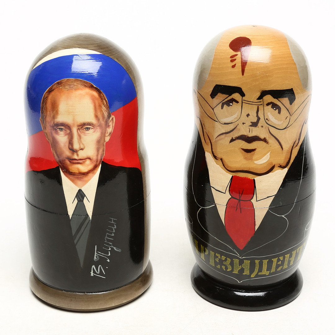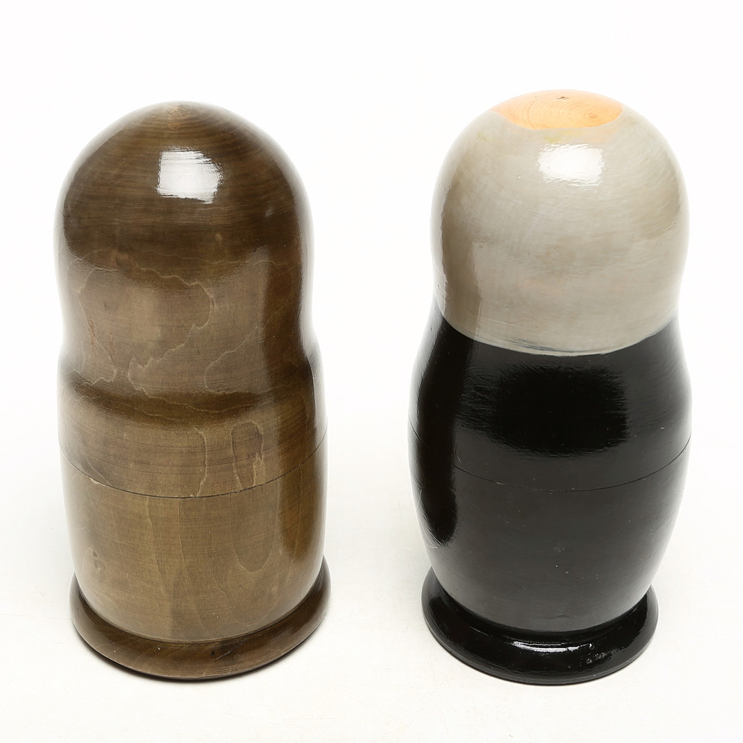 4280667. DUKKER, 2 stk, træ, med indhold.