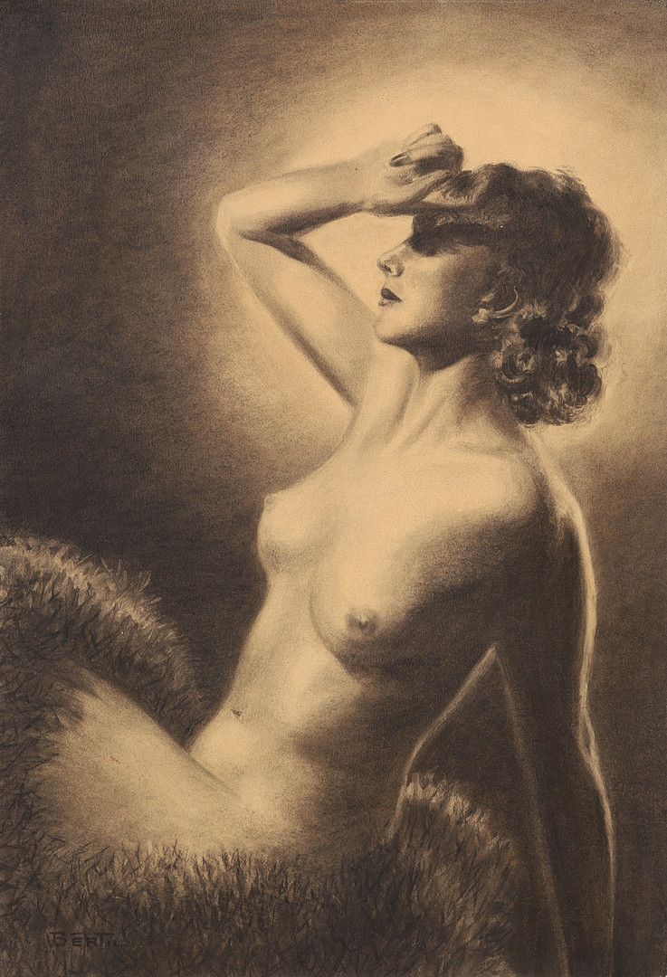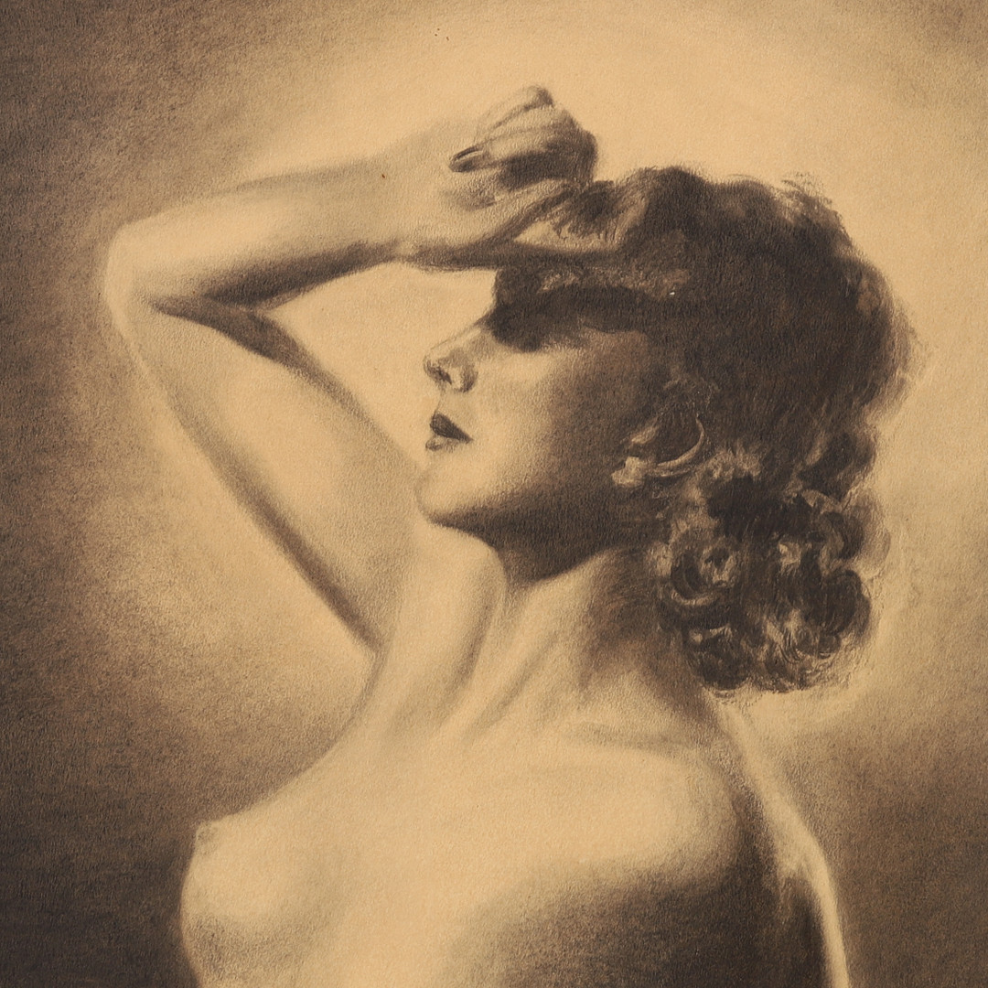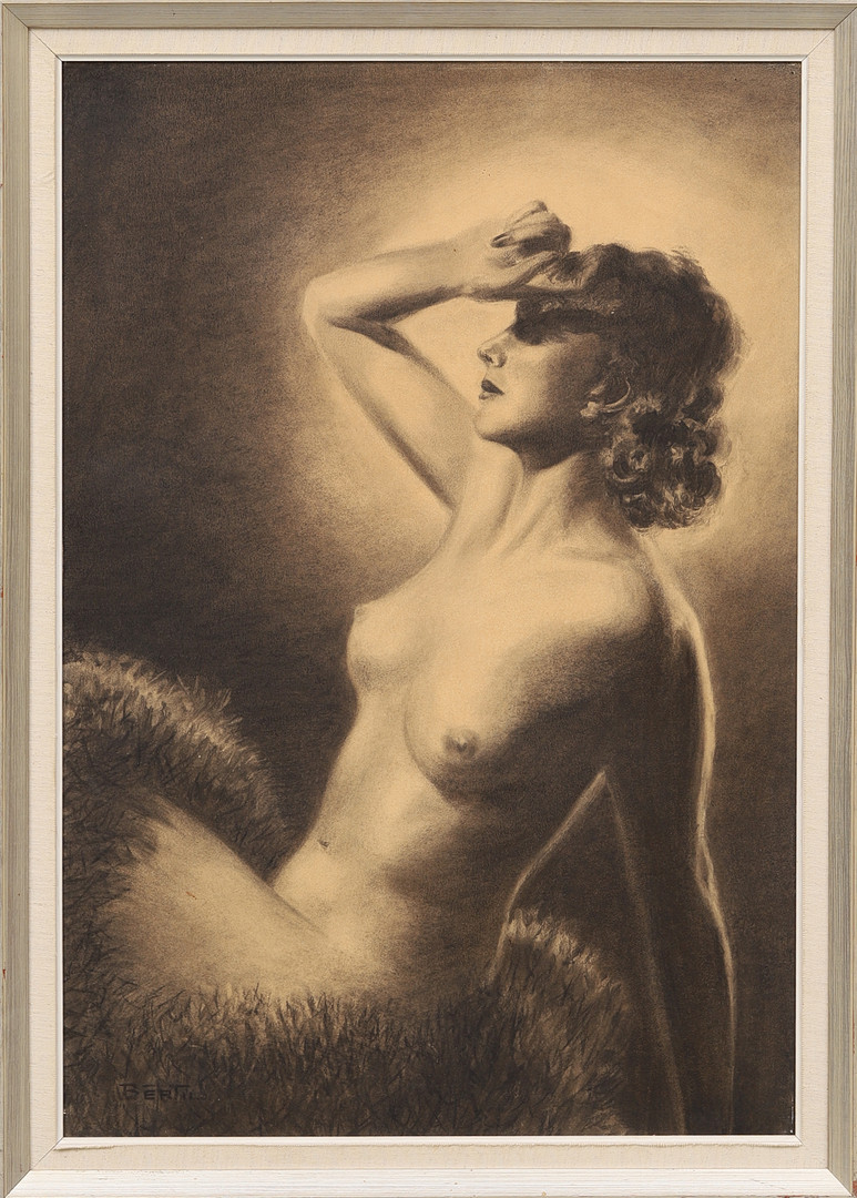 4281341. OIDENTIFIERAD KONSTNÄR. Kvindelig model, kultegning, signeret Bertil.