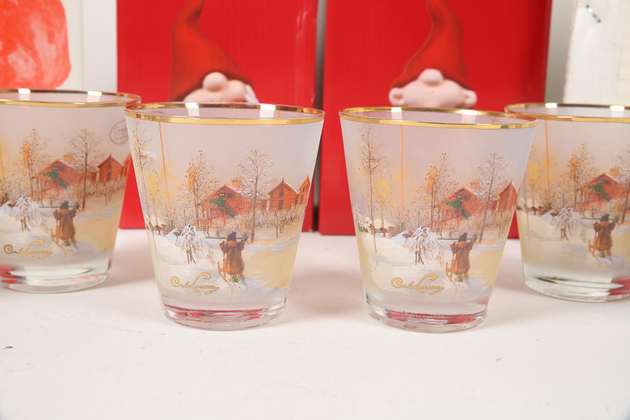 4 glas lanterner, Goebel, Artis Orbis, „Britta mit Schlitten“, efter Carl Larsson, højde ca. 9 cm, diameter ca. 8,5 cm.