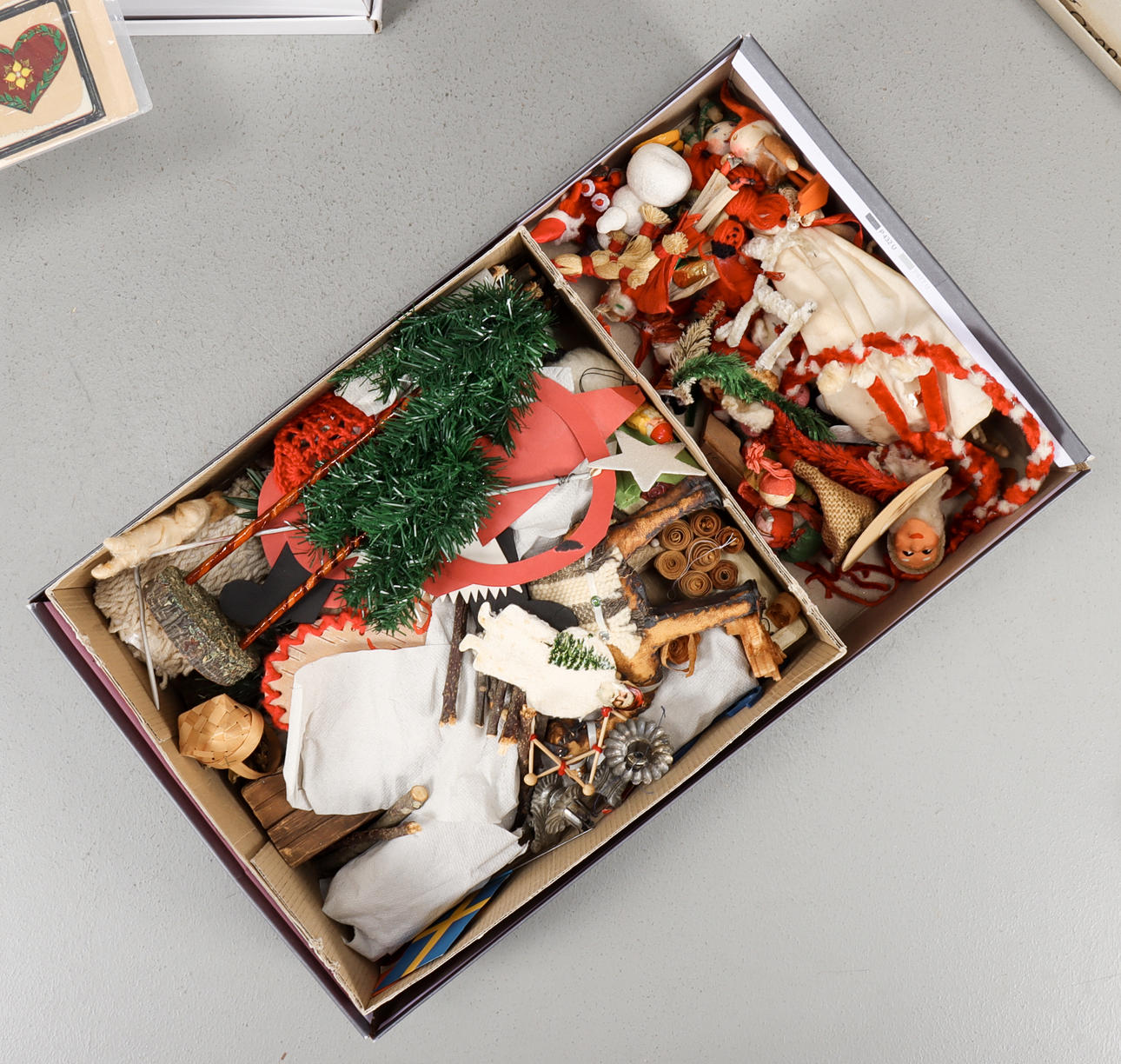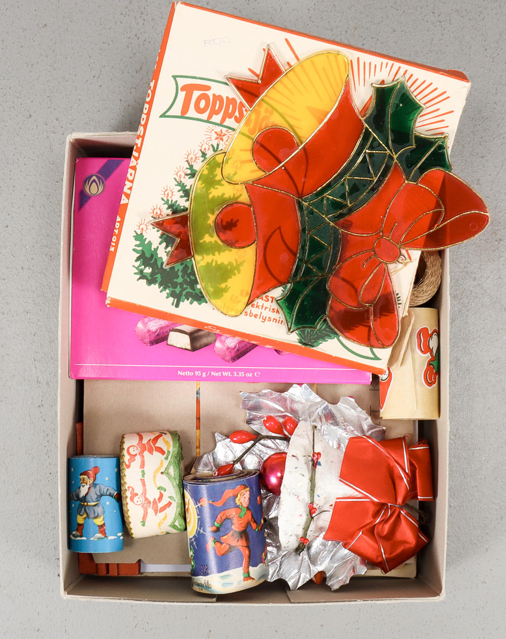 Kartonfigurer, juletræspynt, pyntegjenstander og meget mere.