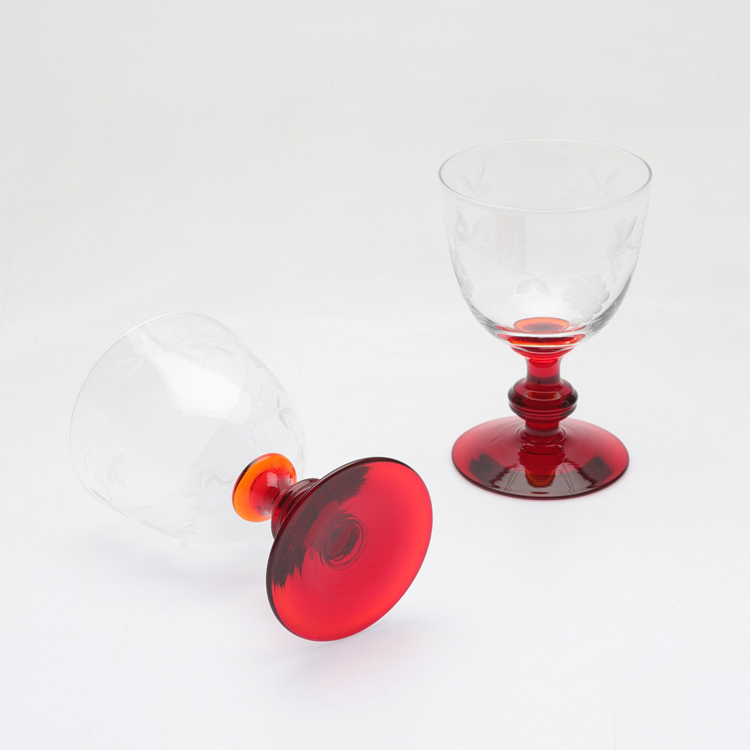 4283226. VINGLAS, 8 stk., skåret dekor, 20. årh.
