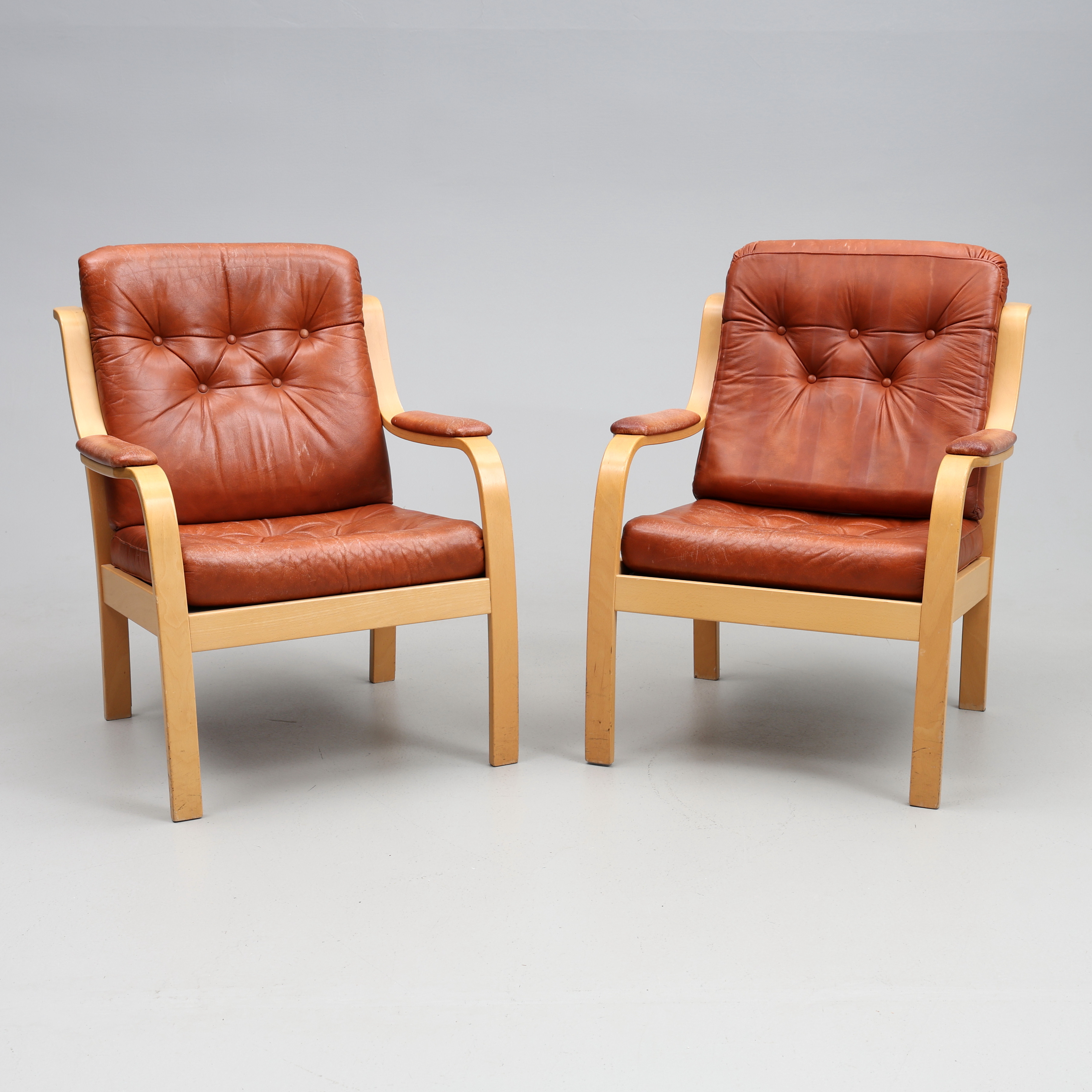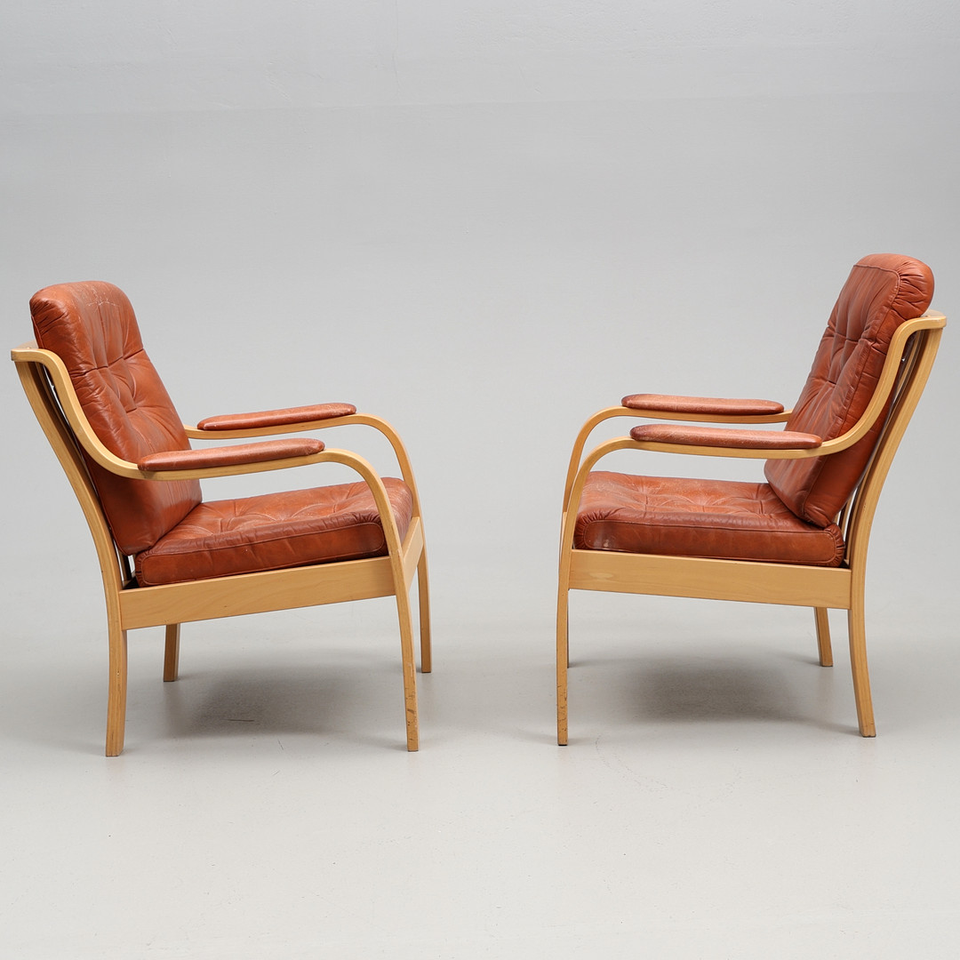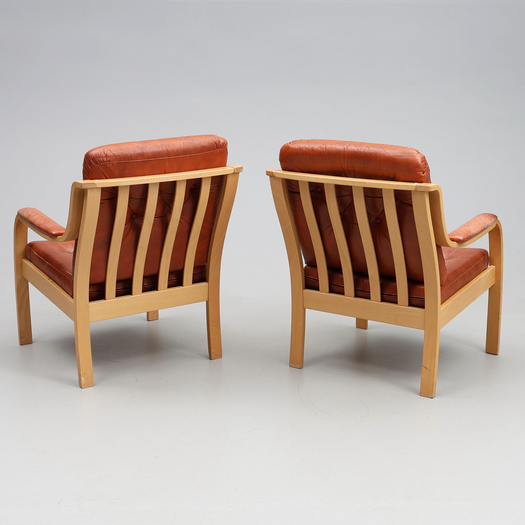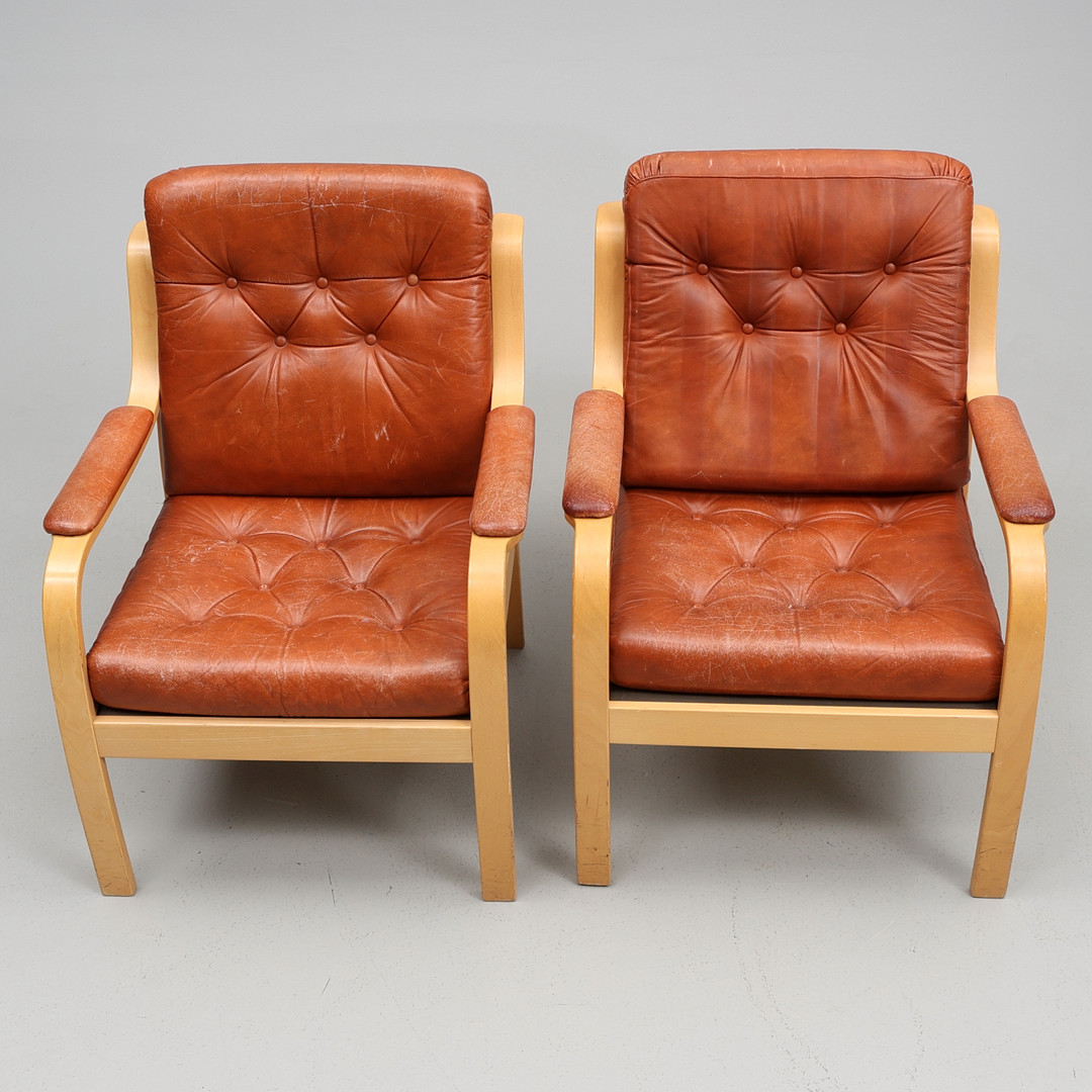 4284443. LÆNESTOLE. Et par, Gemla møbler, læder.