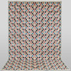 Hovedfelt med overalls design bestående af stiliserede blomster i polykrome farver.