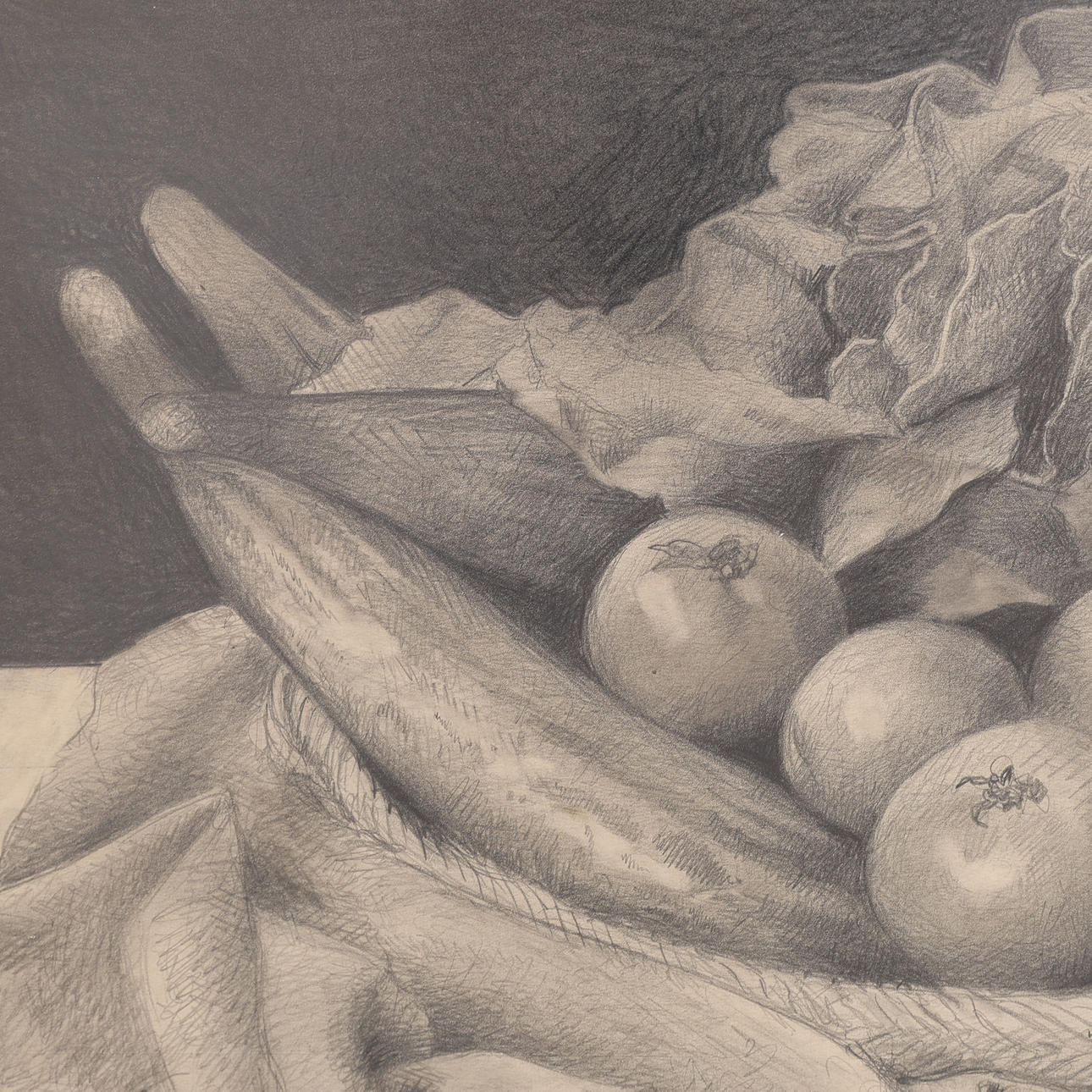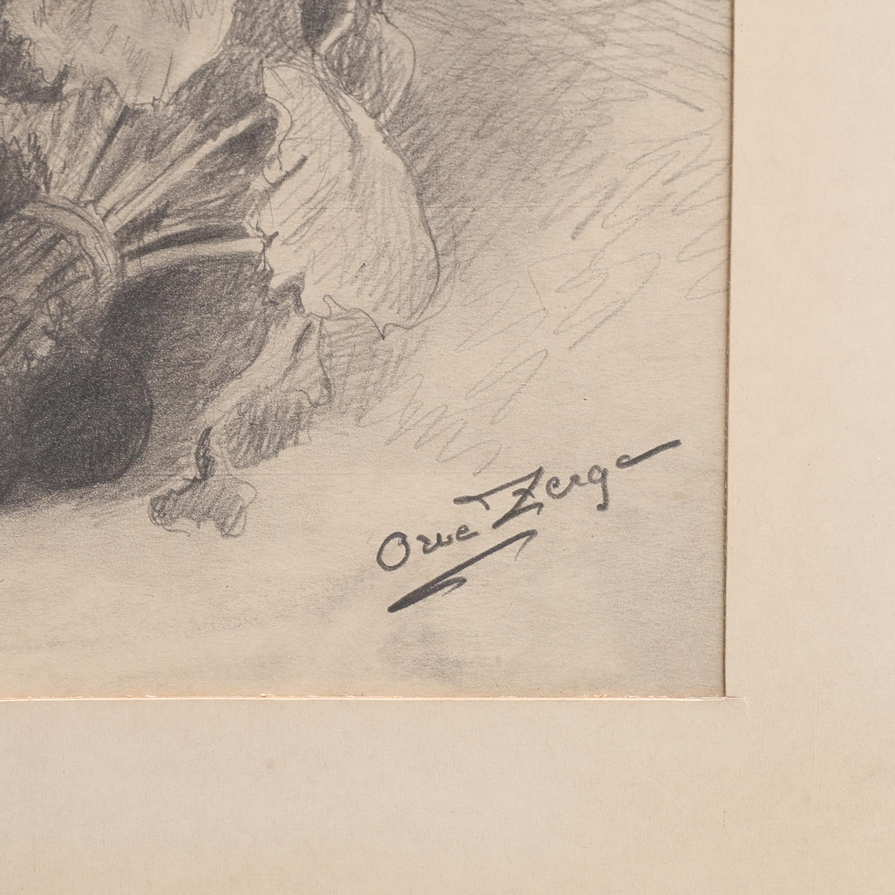 Blyant på papir, signeret, ca. 35x48 cm. Uindrammet, men fastgjort til passepartout, der måler ca 51x61 cm.