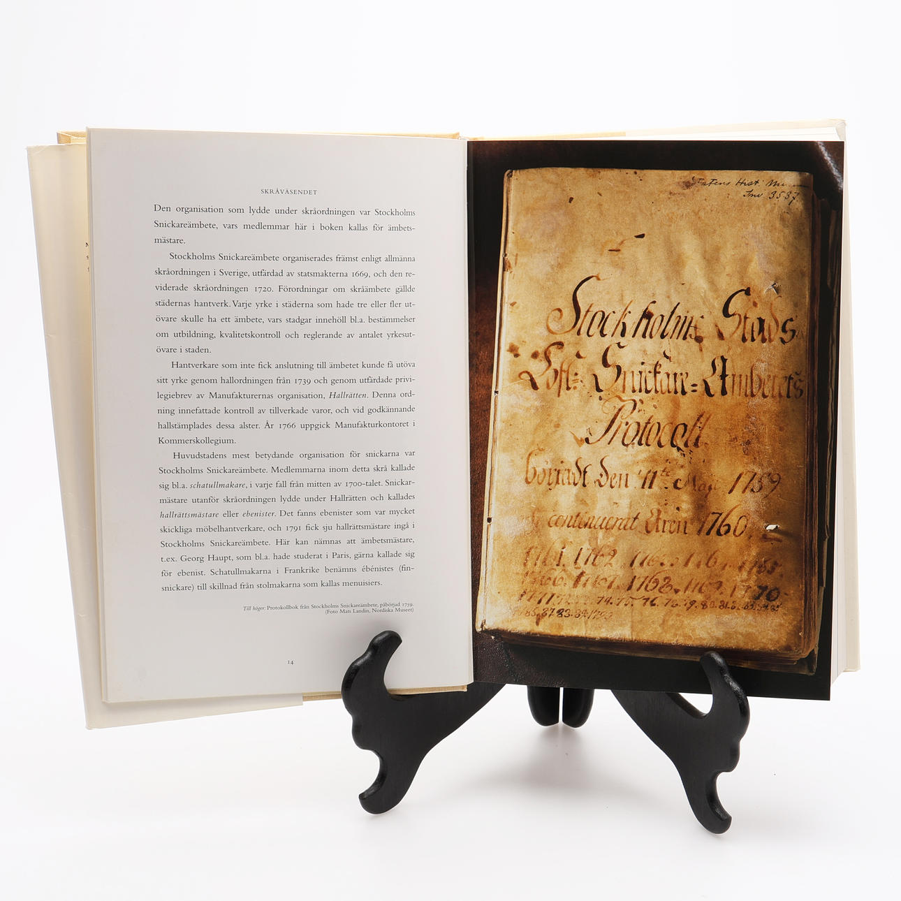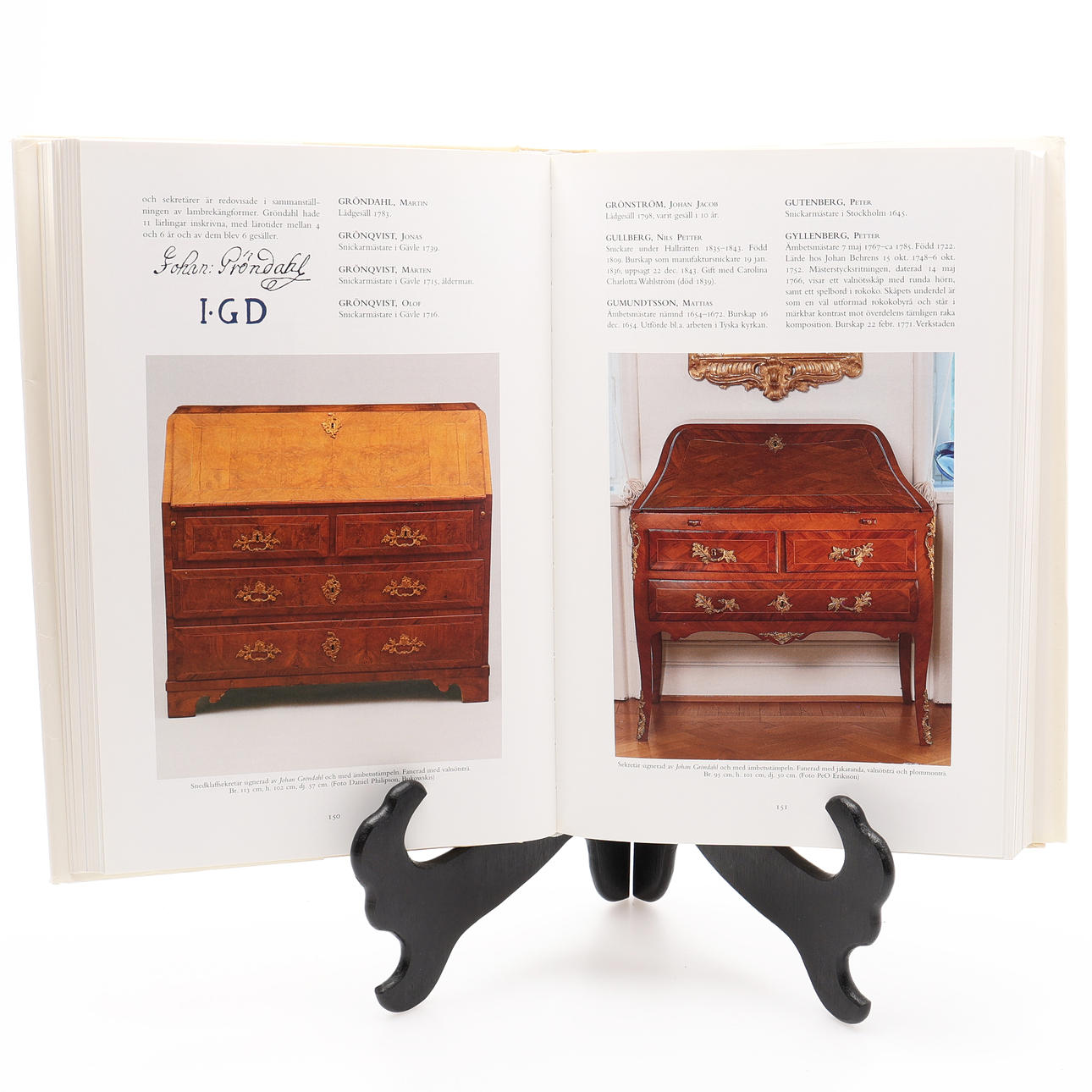 Møbler. Sylvain, Torsten. Møbler af mestrene. Stockholm arbejder 1700-1850. Prisma forlag, Stockholm, 1996. Første udgave. Stor 4. i et gult kugleformet bånd med forgyldt bagtekst og et illustreret beskyttelsesomslag. Overdådigt illustreret, mest i farve, men også i sort og hvid. 555 s.