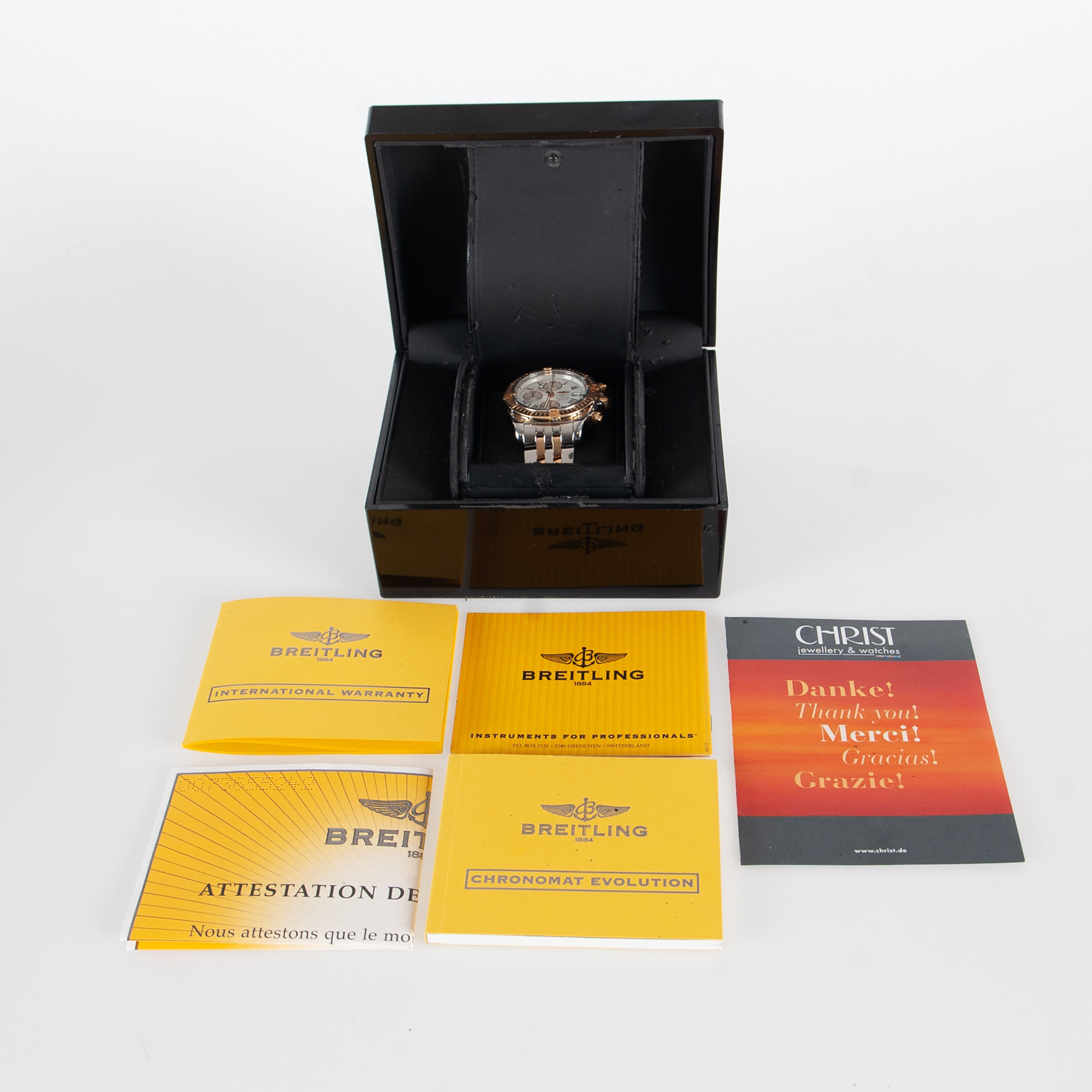 4287067. BREITLING CHRONOMAT EVOLUTION GULD/STÅL 44 MM, KOMPLET SÆT, REF C13356-046.