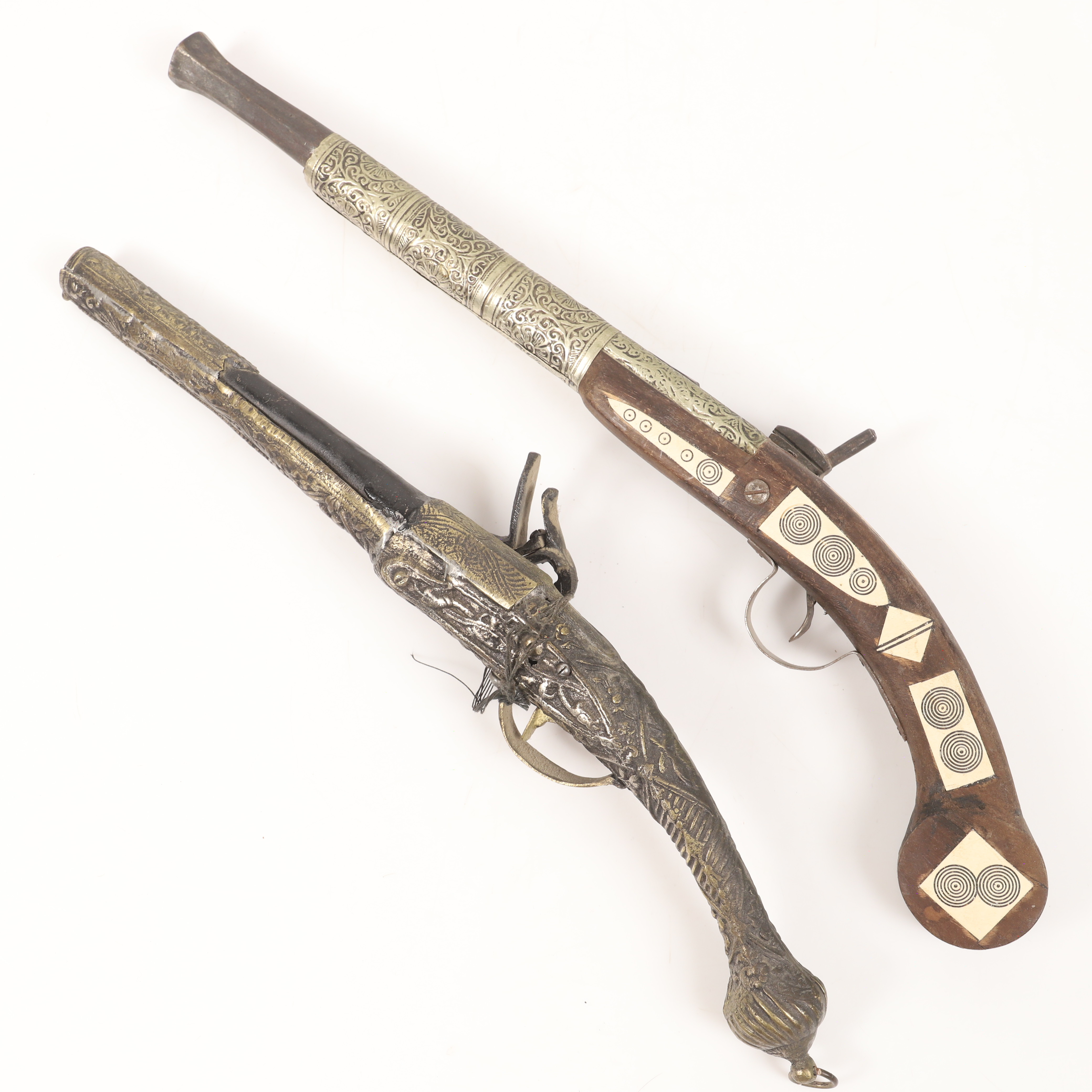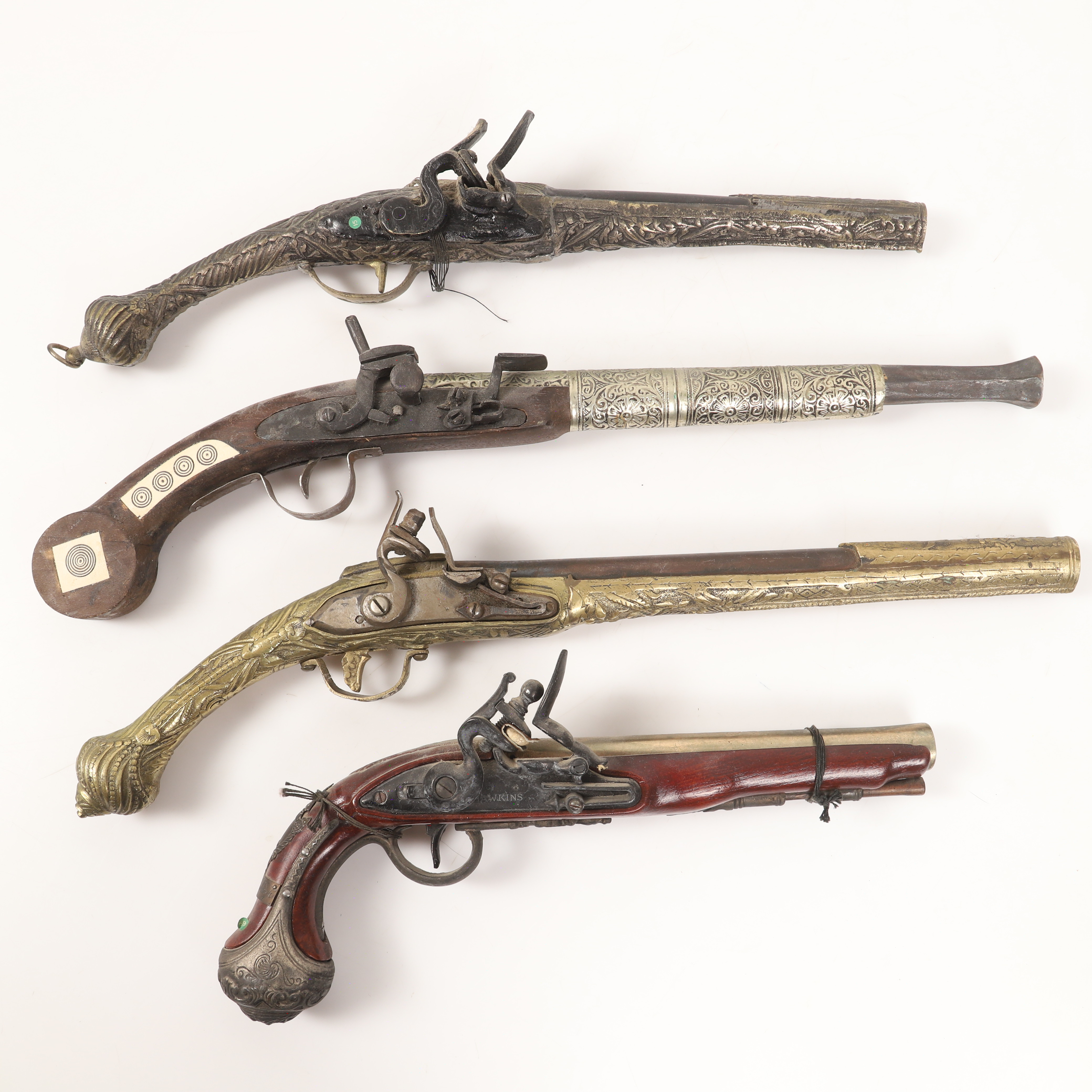 4288082. SLAGLÅSPISTOLER OG FLINTLÅSPISTOLER, 4 stk., replikaer.