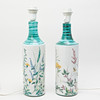 Malet indretning af engblomster, højde ca. 46 cm inklusive lampeholder.