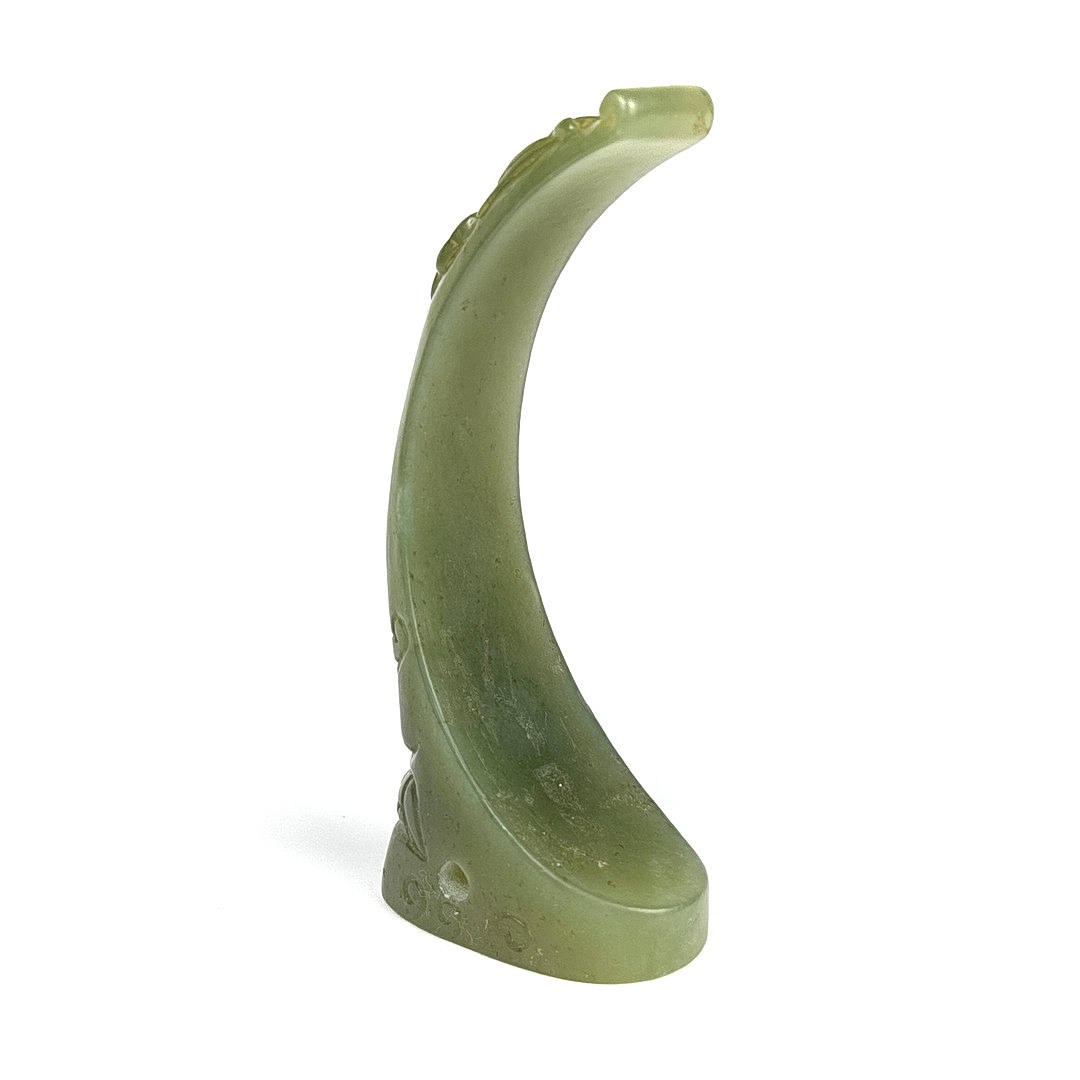 En udskåret jade-mandarinhår/hatdekoration. Længde 9 cm.