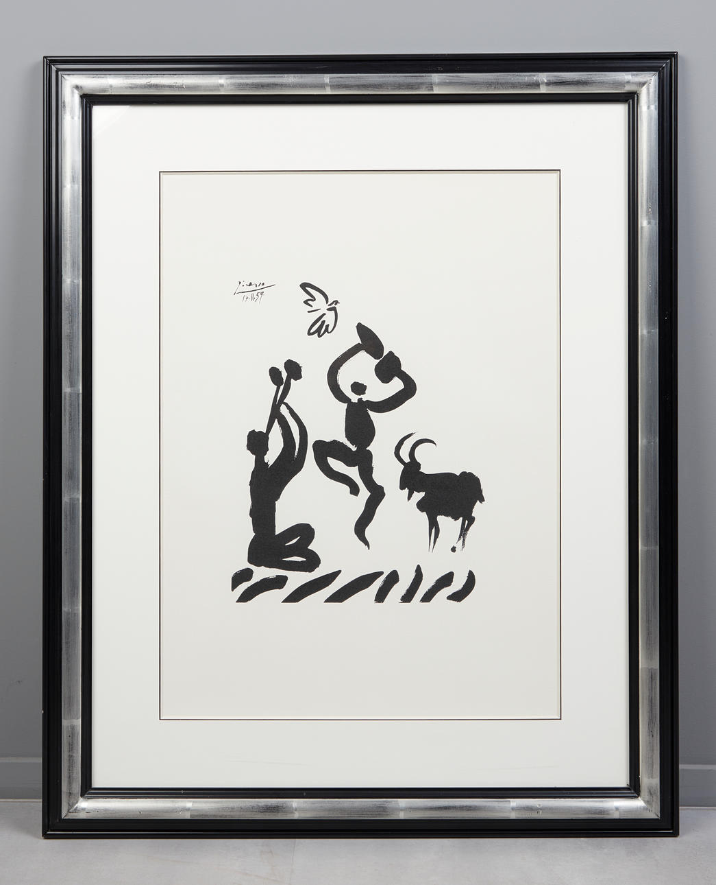 Pablo Picasso (1881-1973) (F), La danse du Berger (hyrdernes dans), litografi på Fabriano papir (vandmærke), 44 x 35 cm trykstørrelse, 107 x 87 cm rammestørrelse, signeret på tryk og dateret 17.11.59.